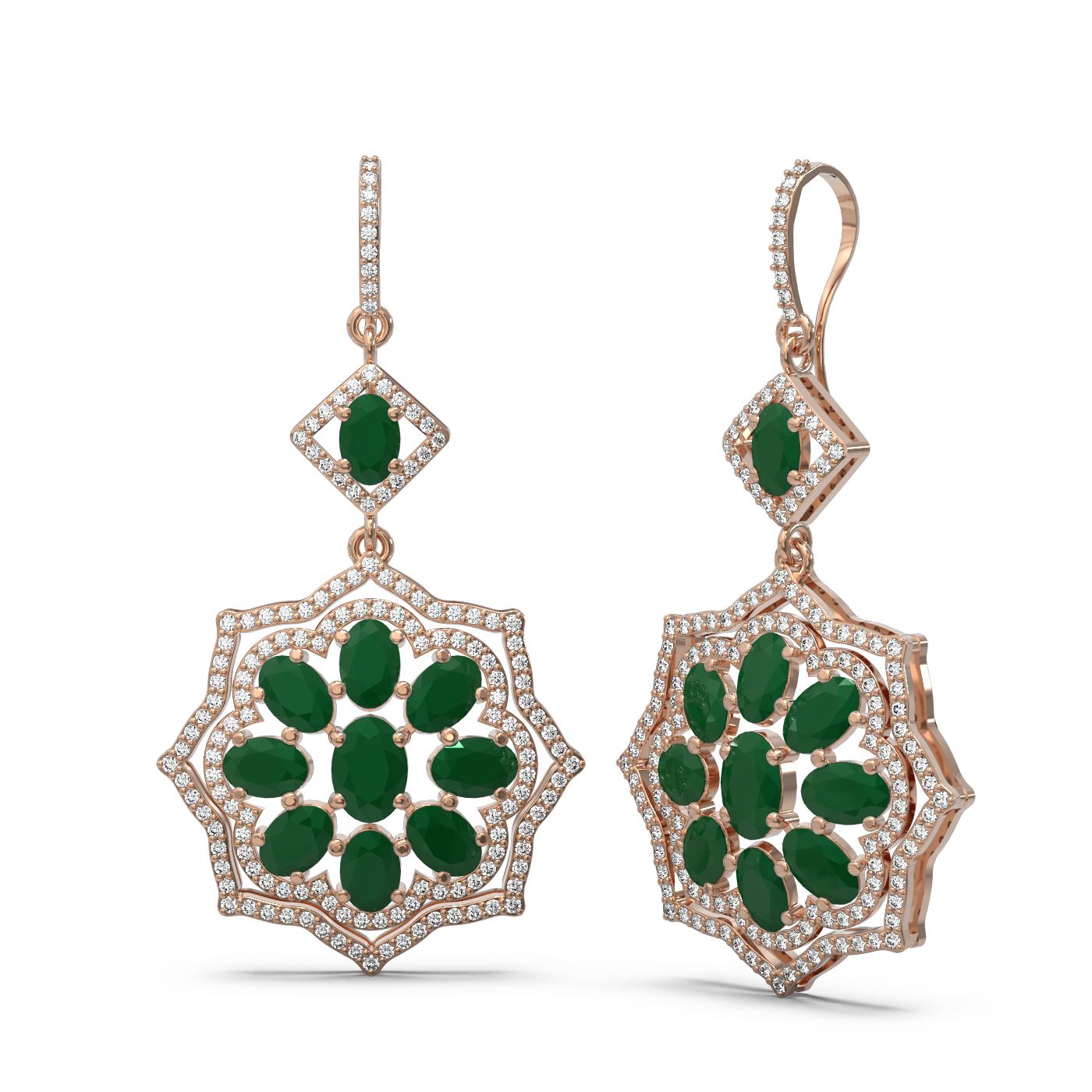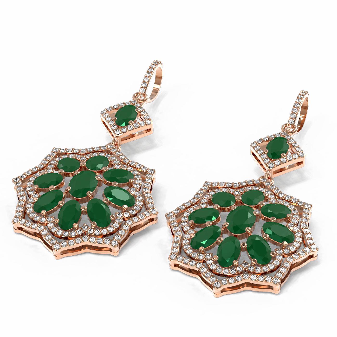 REF-365R6K - SKU: 51659 ---- 16.88 ctw Emerald & Diamond Earrings 18K Rose Gold
