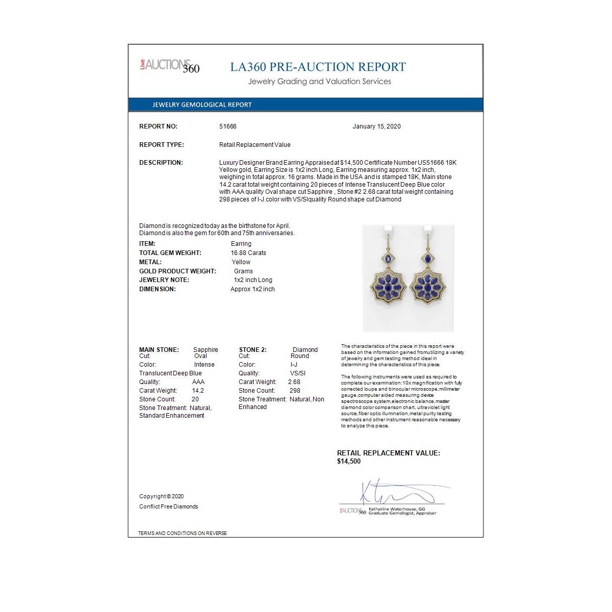 REF-342M2G - SKU: 51666 ---- 16.88 ctw Sapphire & Diamond Earrings 18K Yellow Gold