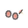 16.90 TCW PINK SAPPHIRE, PEACH CORAL & DIAMOND STUD EARRING 18K GOLD