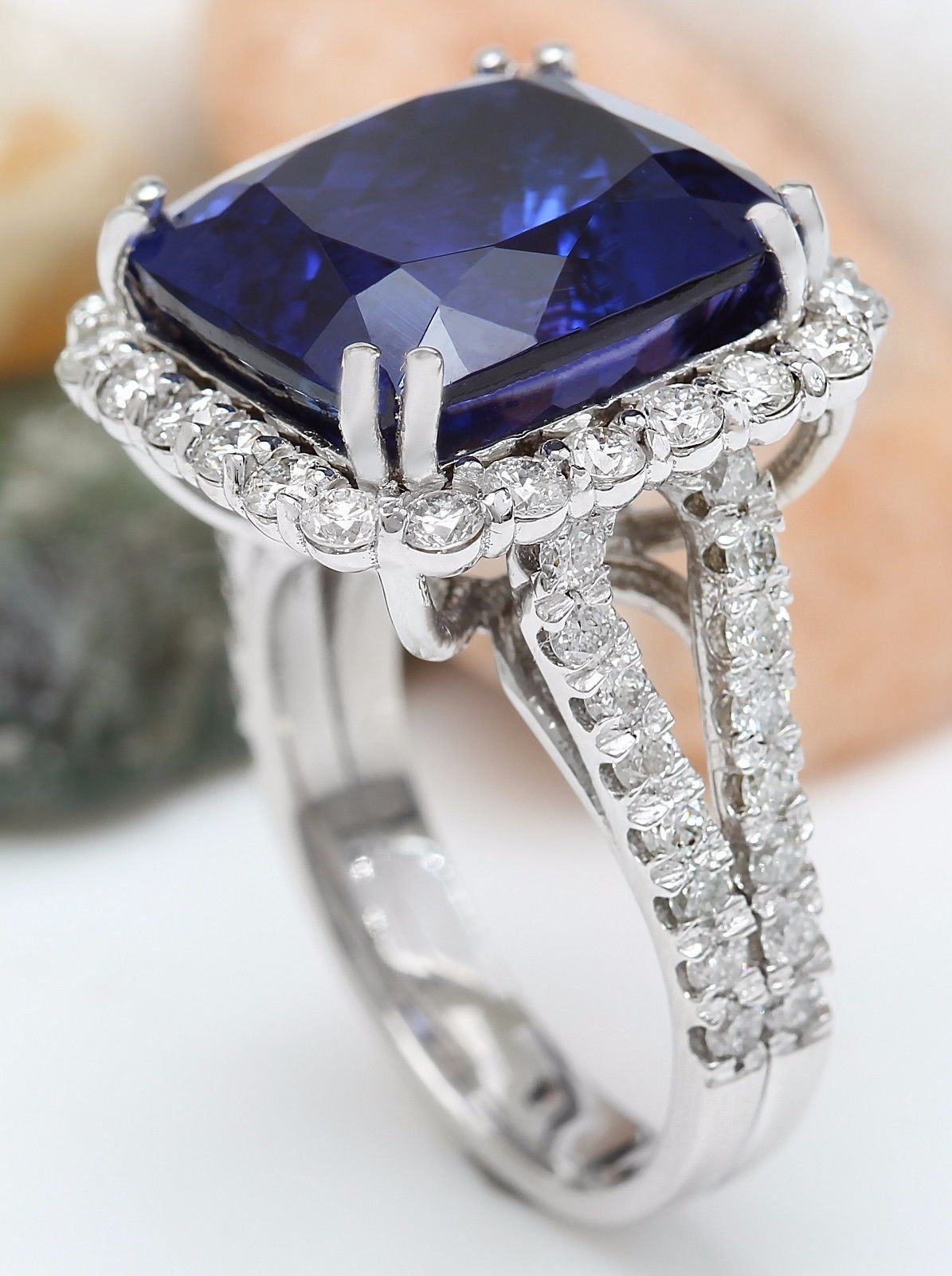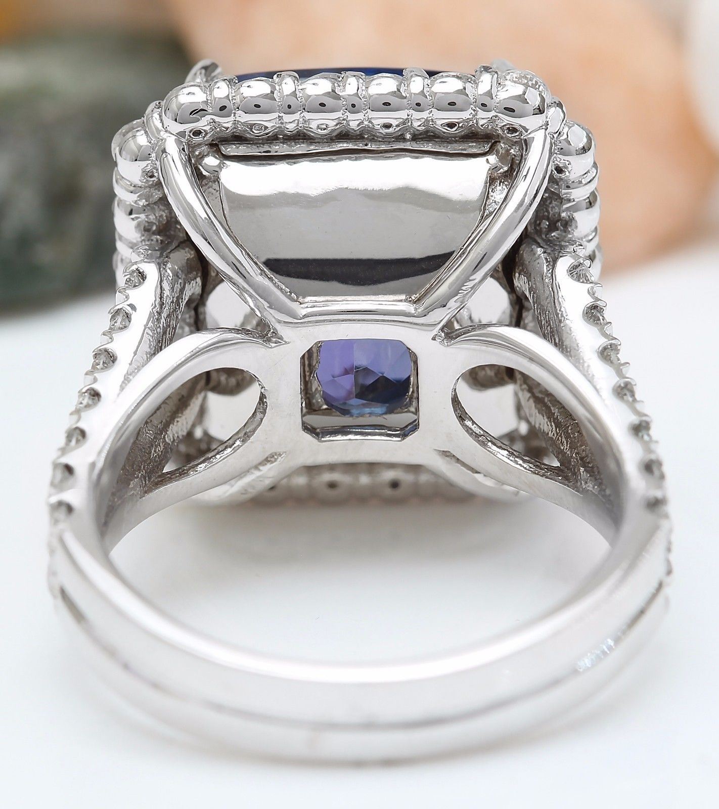 16.92 Carat Natural Tanzanite 14K Solid White Gold Diamond Ring