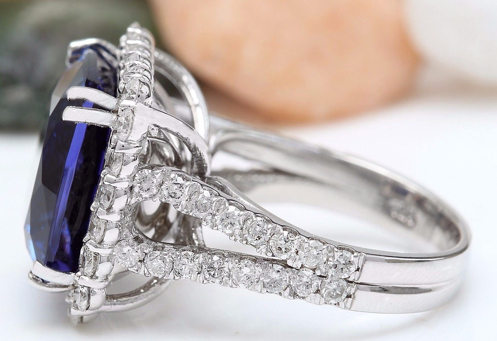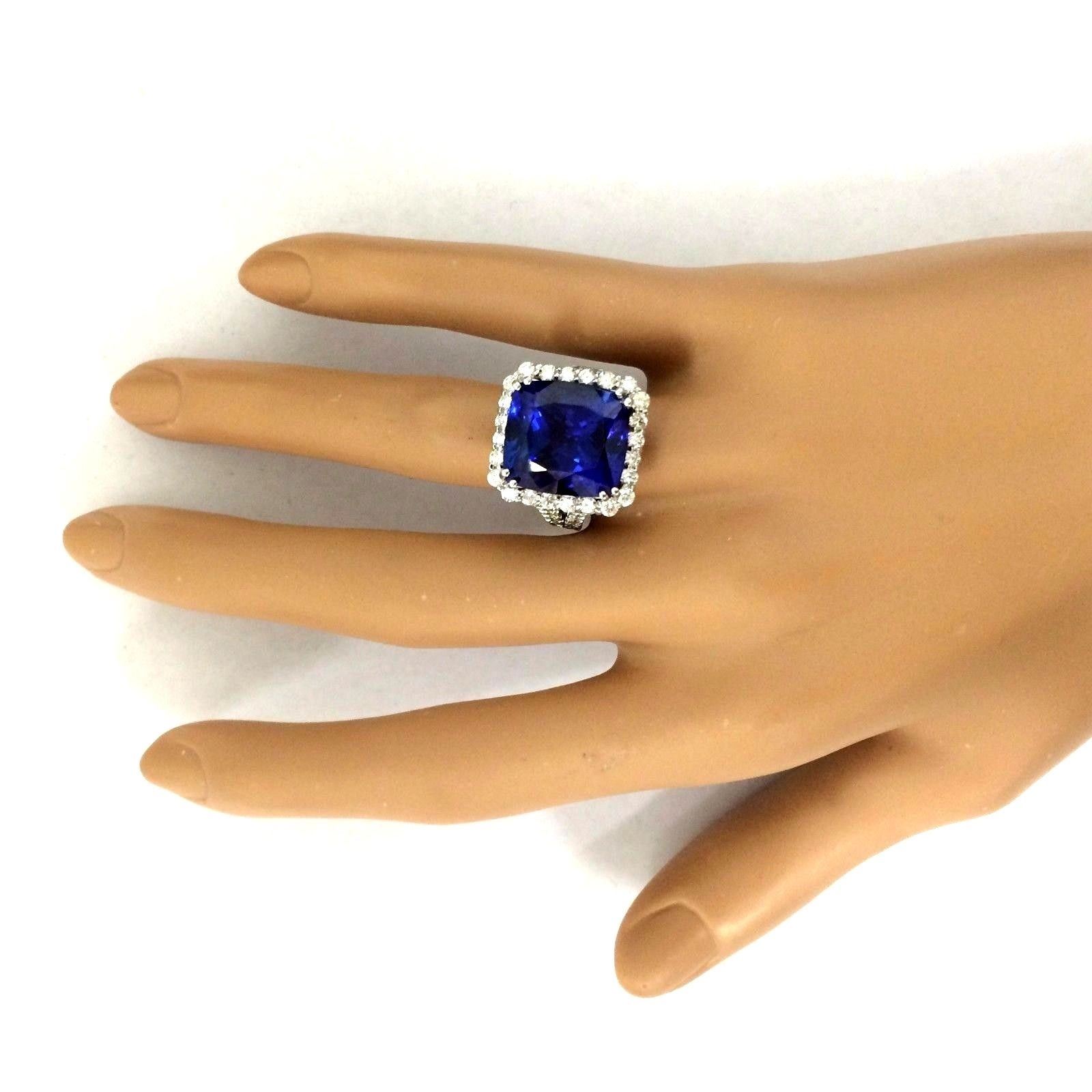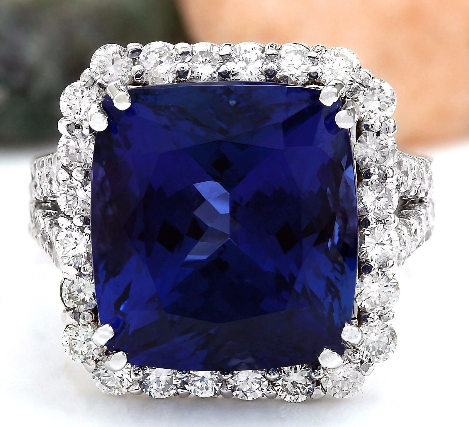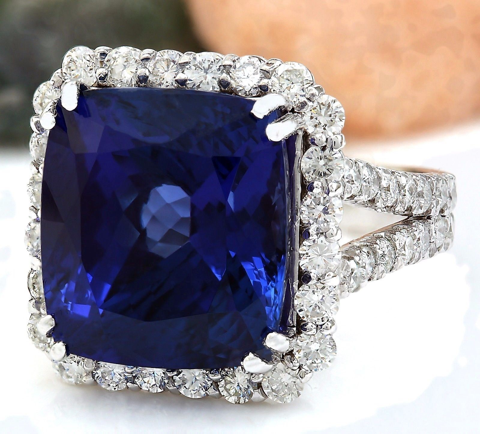 16.92 Carat Natural Tanzanite 18K Solid White Gold Diamond Ring