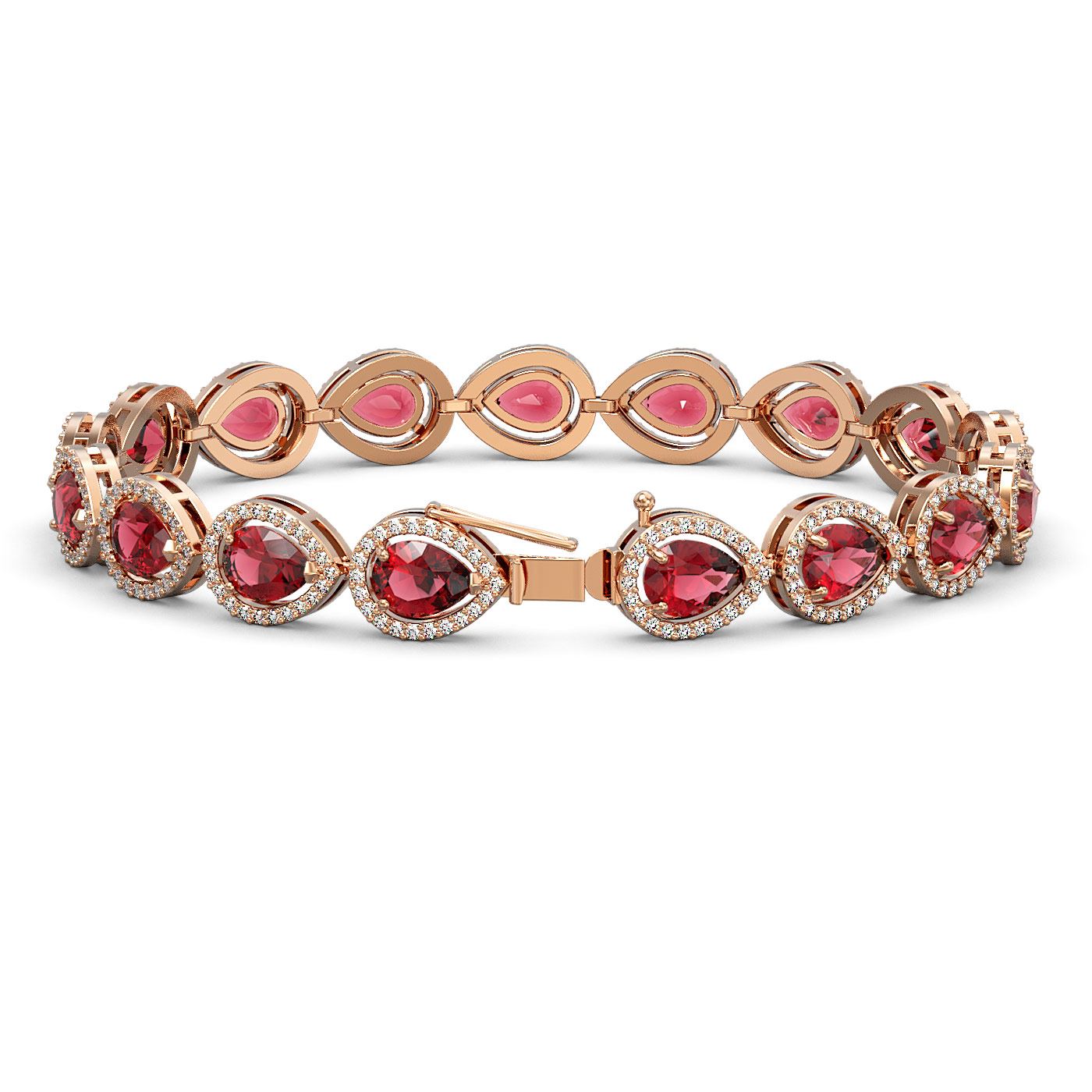 REF-472N8F - SKU: 41109 ---- 16.93 ctw Tourmaline & Diamond Micro Pave Halo Bracelet 10k Rose Gold