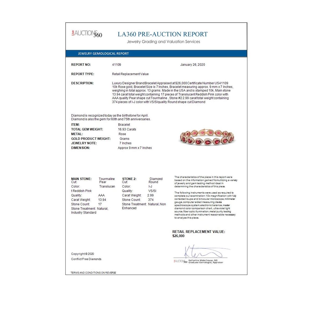 All sales are final, placing a bid is a legally binding obligation. All lots are sold as is, where is, with all the faults, imperfections, omissions and errors in the written description, estimates, appraisals, graphics and photography. USJL is not responsible for any errors or omissions in the description, graphics or photography provided or in the bidding software. Due diligence to verify the condition and description of a lot is the sole responsibility of the Bidder prior to placing any bid. Returns may only be made with the advance written authorization of USJL and are in USJL's sole discretion to approve. To request a return you must provide a written request fully explaining the basis for the return no later than 4 days after your receipt of the lot. Under no circumstances will any amounts other than the winning bid amount be refunded. A restocking charge of 19% of the full invoice amount may apply in USJL 's sole discretion. Any allowed returns must be received in exactly the same condition as when originally shipped to Buyer, or they will be returned to buyer at Buyer's cost. Any unauthorized returns will be refused. DELIVERY REFUSAL OF ITEMS SHIPPED BY US JEWELRY LIQUIDATION TO THE BIDDER CONSTITUTES AN UNAUTHORIZED RETURN IN DIRECT VIOLATION OF THESE GENERAL TERMS AND CONDITIONS.