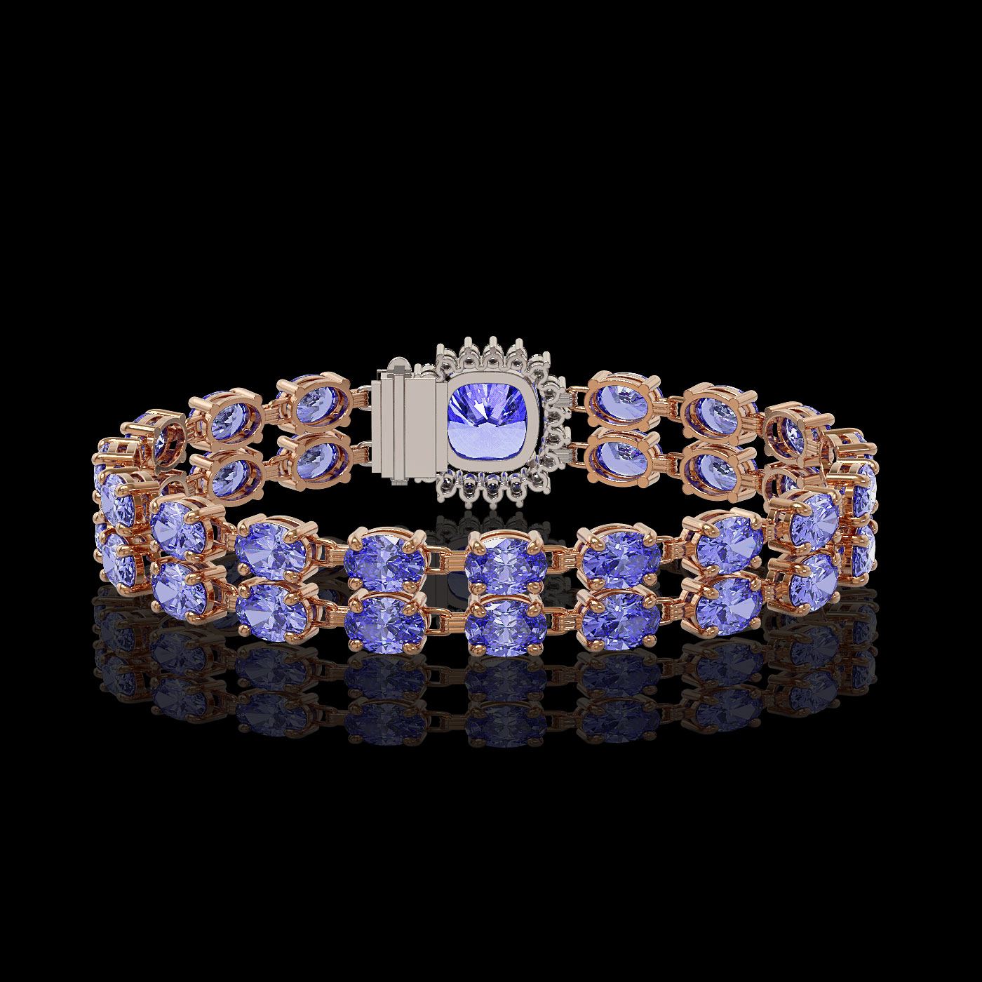 REF-245N5F - SKU: 45603 ---- 16.96 ctw Tanzanite & Diamond Bracelet 14K Rose Gold