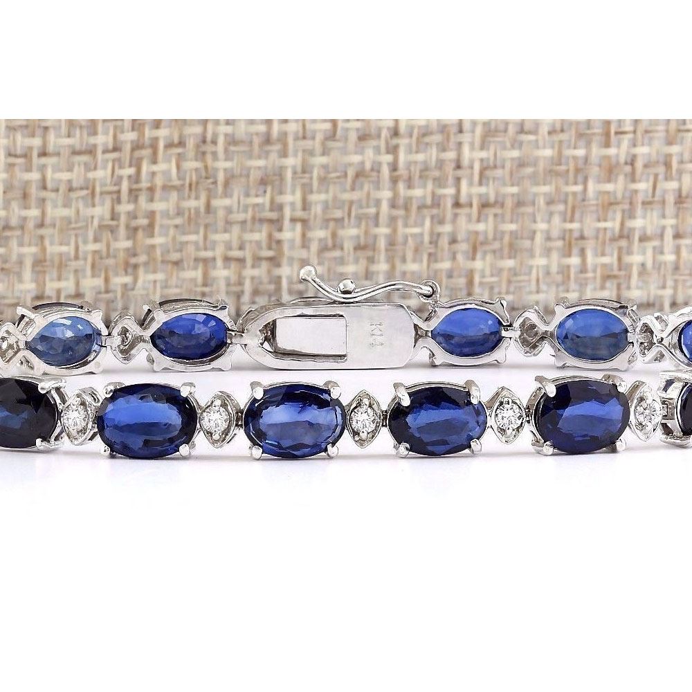 16.97 CTW Natural Sapphire And Diamond Bracelet In 18K Solid White Gold