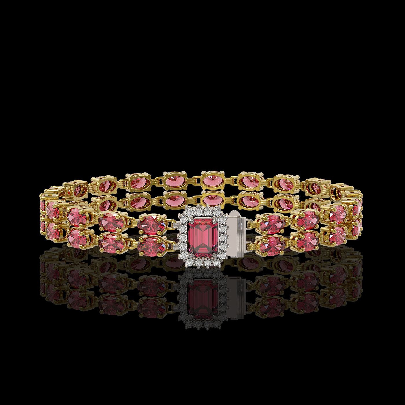 REF-236A4N - SKU: 45727 ---- 16.97 ctw Tourmaline & Diamond Bracelet 14K Yellow Gold