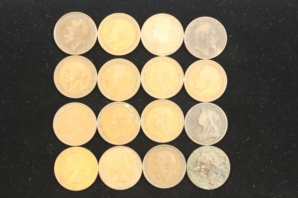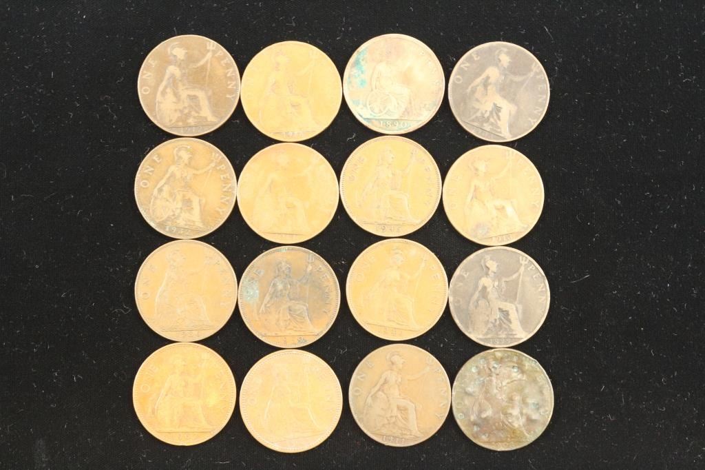 16 ASSORTED 1890-1967 GREAT BRITAIN LARGE PENNIES