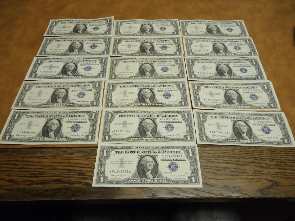 16 ASSORTED 1957 $1 SILVER CERTIFICATES