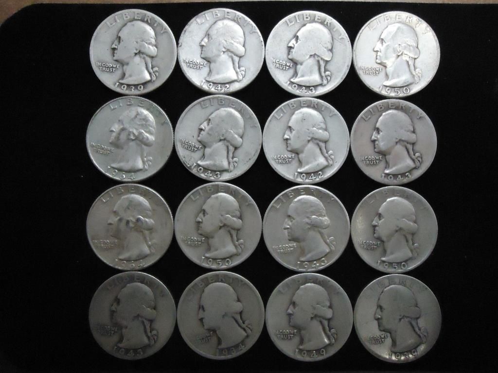 16 ASSORTED WASHINGTON SILVER QUARTERS