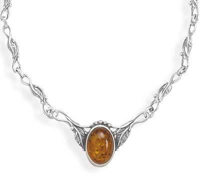 4mm chain features 13x10mm Baltic amber and lobster clasp. .925 Sterling Silver