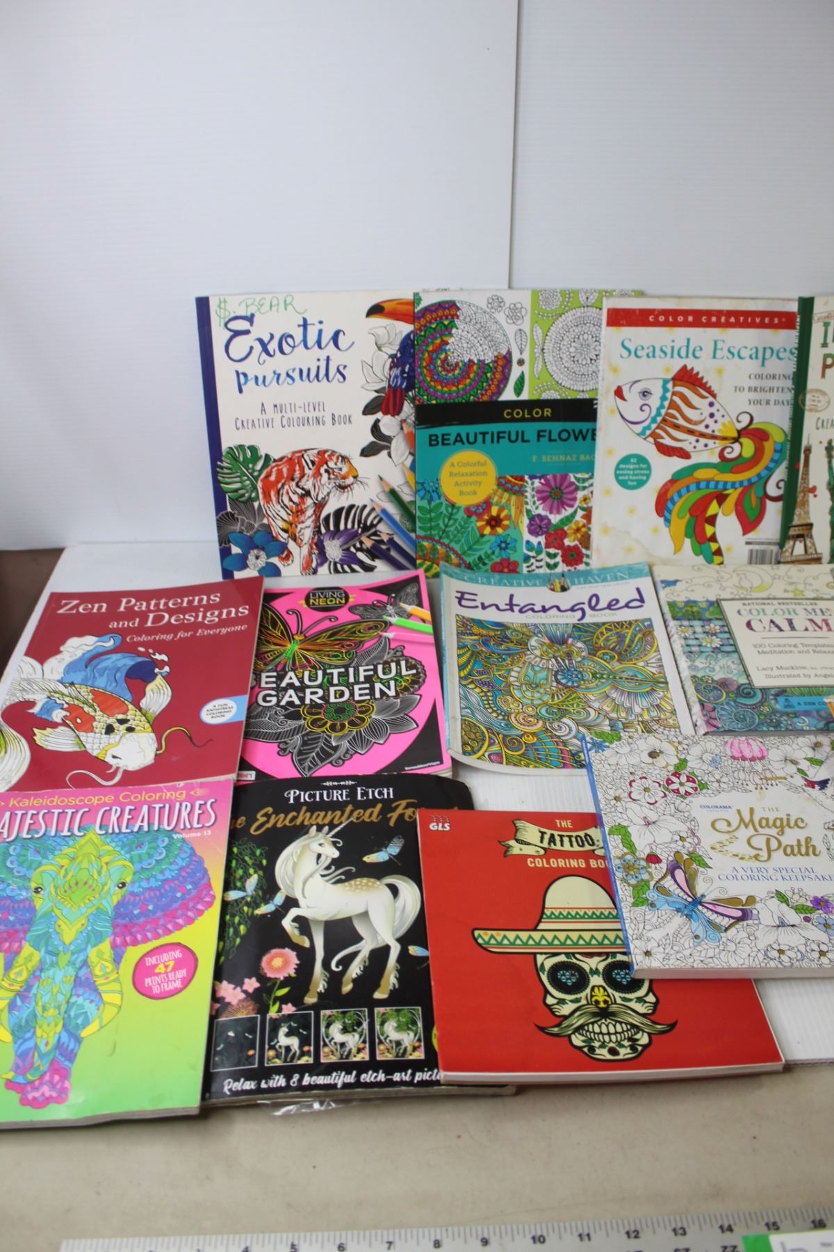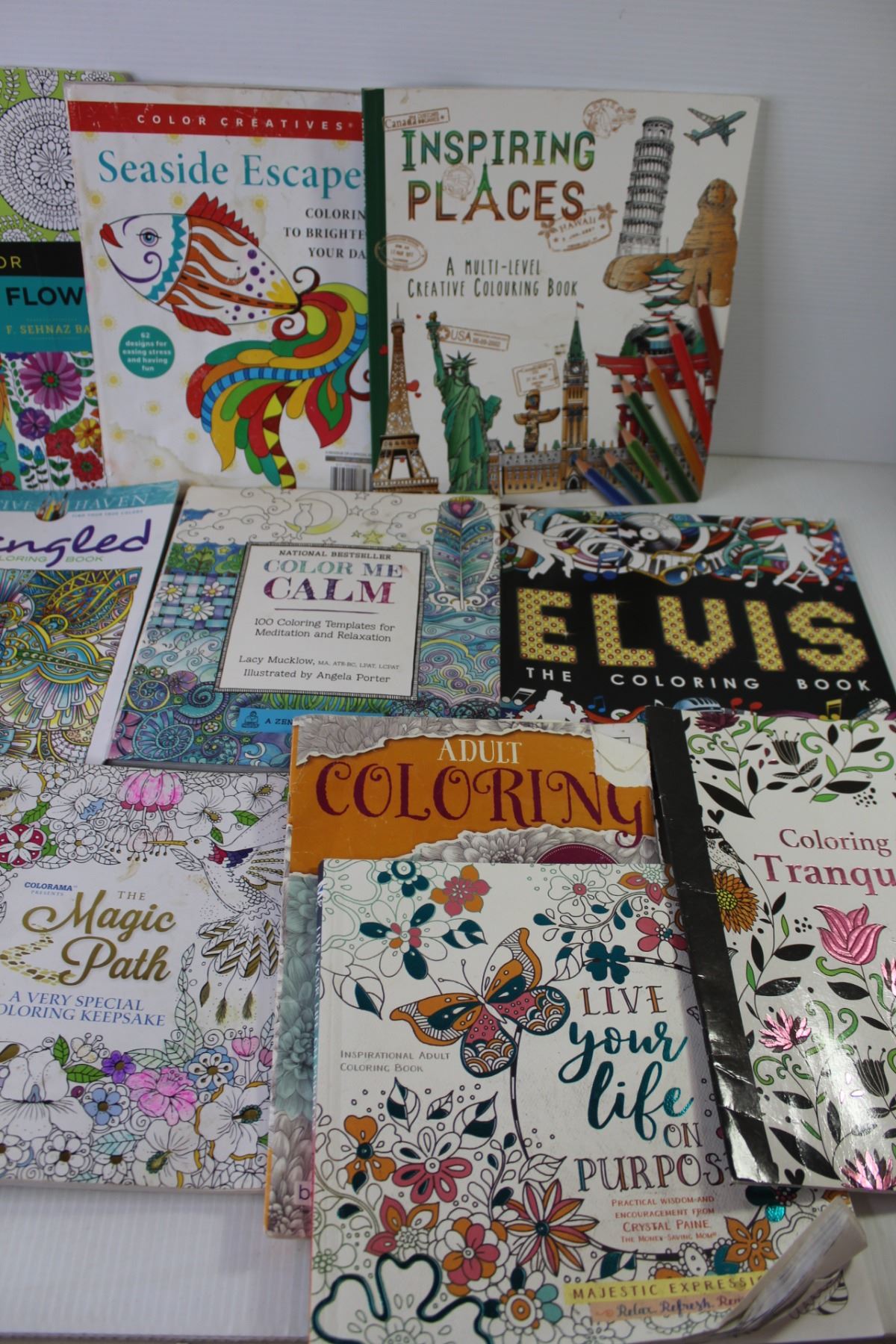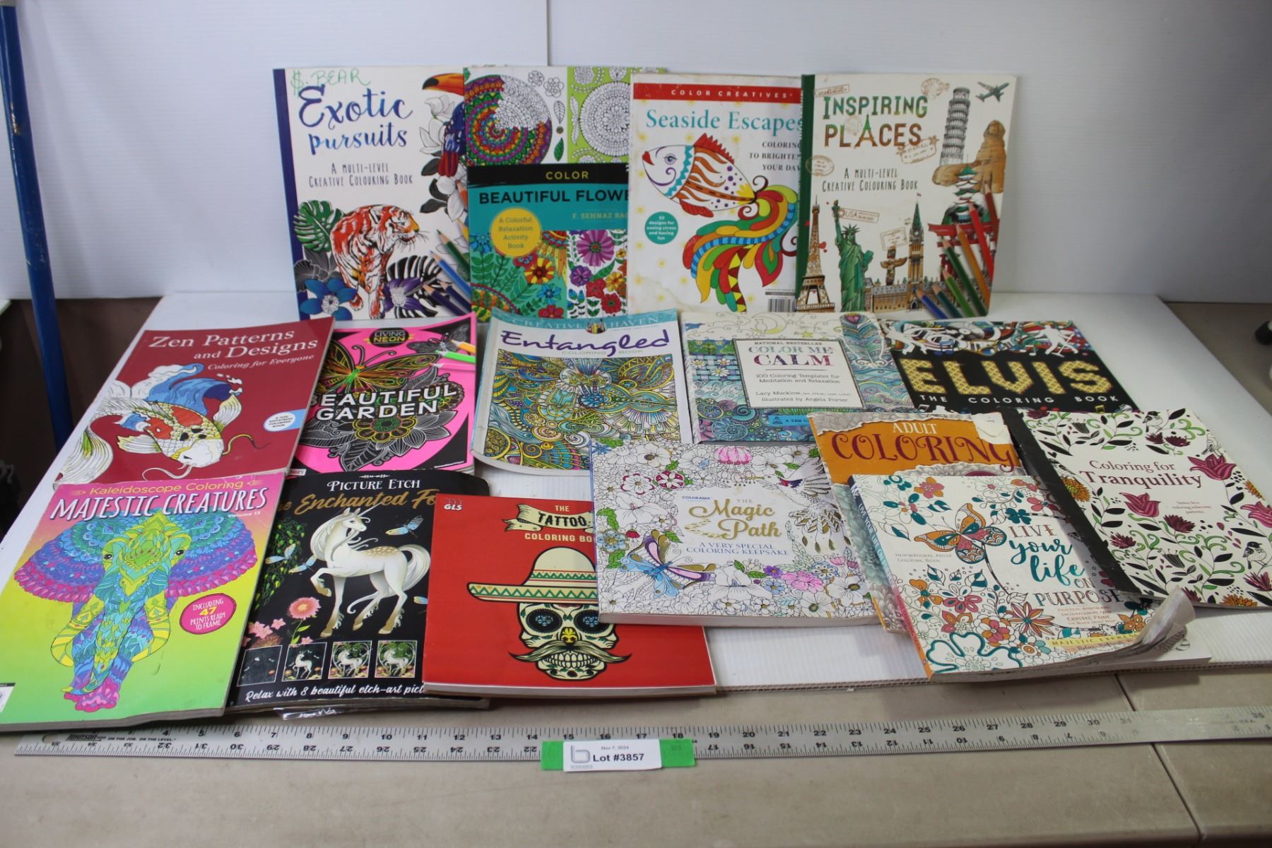 (16) Assorted Coloring Books (Inspiring Places, Zen Patterns, Enchanted Forest, Elvis)