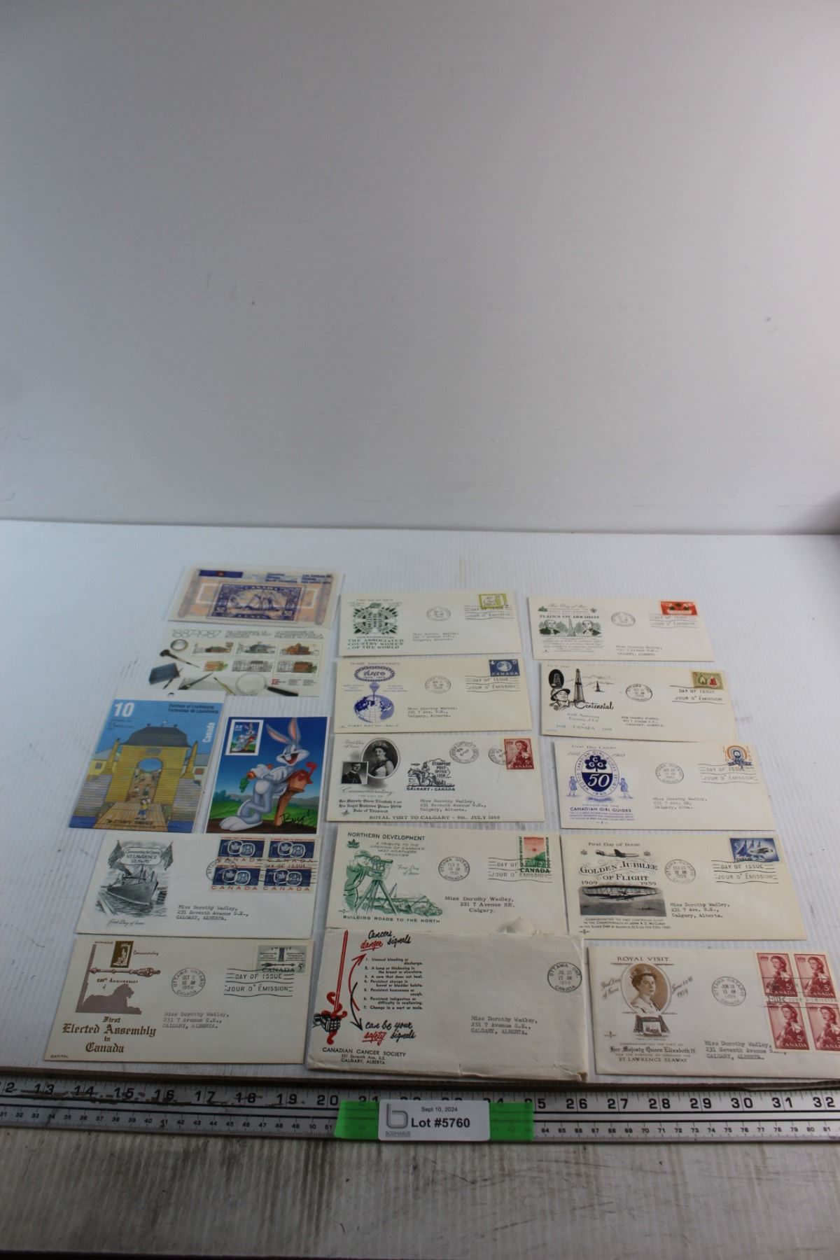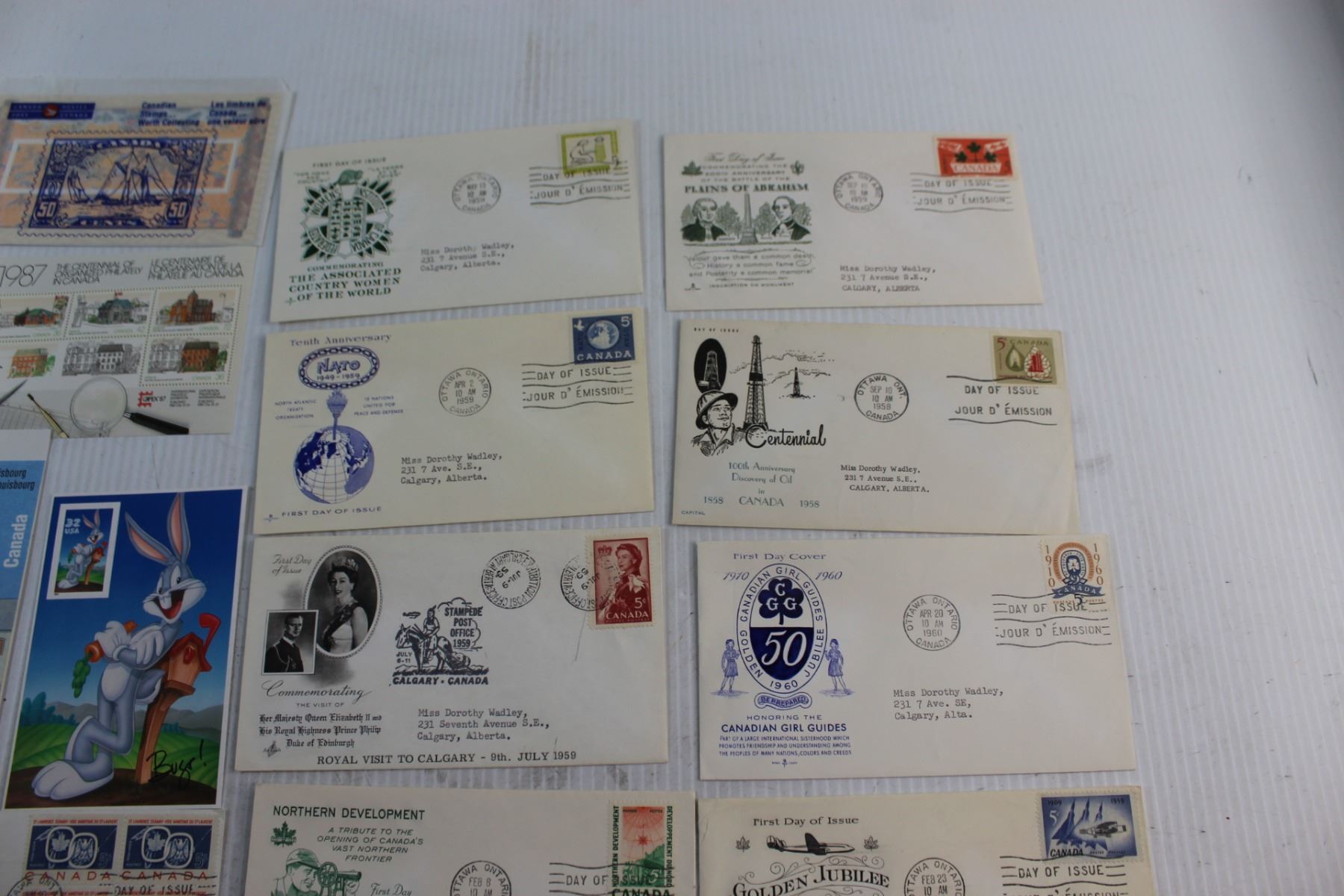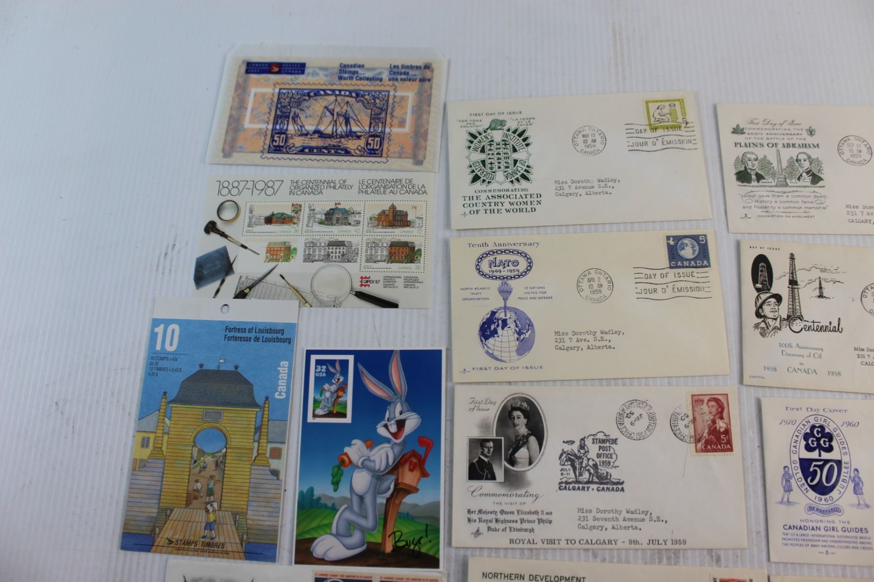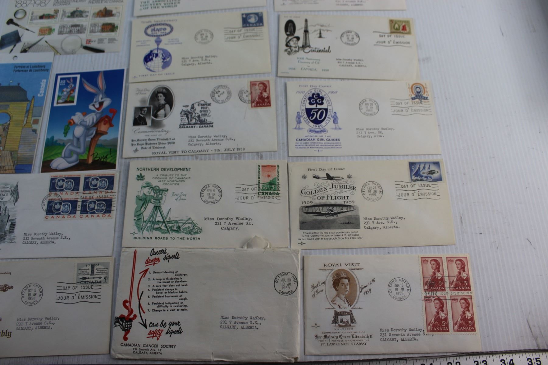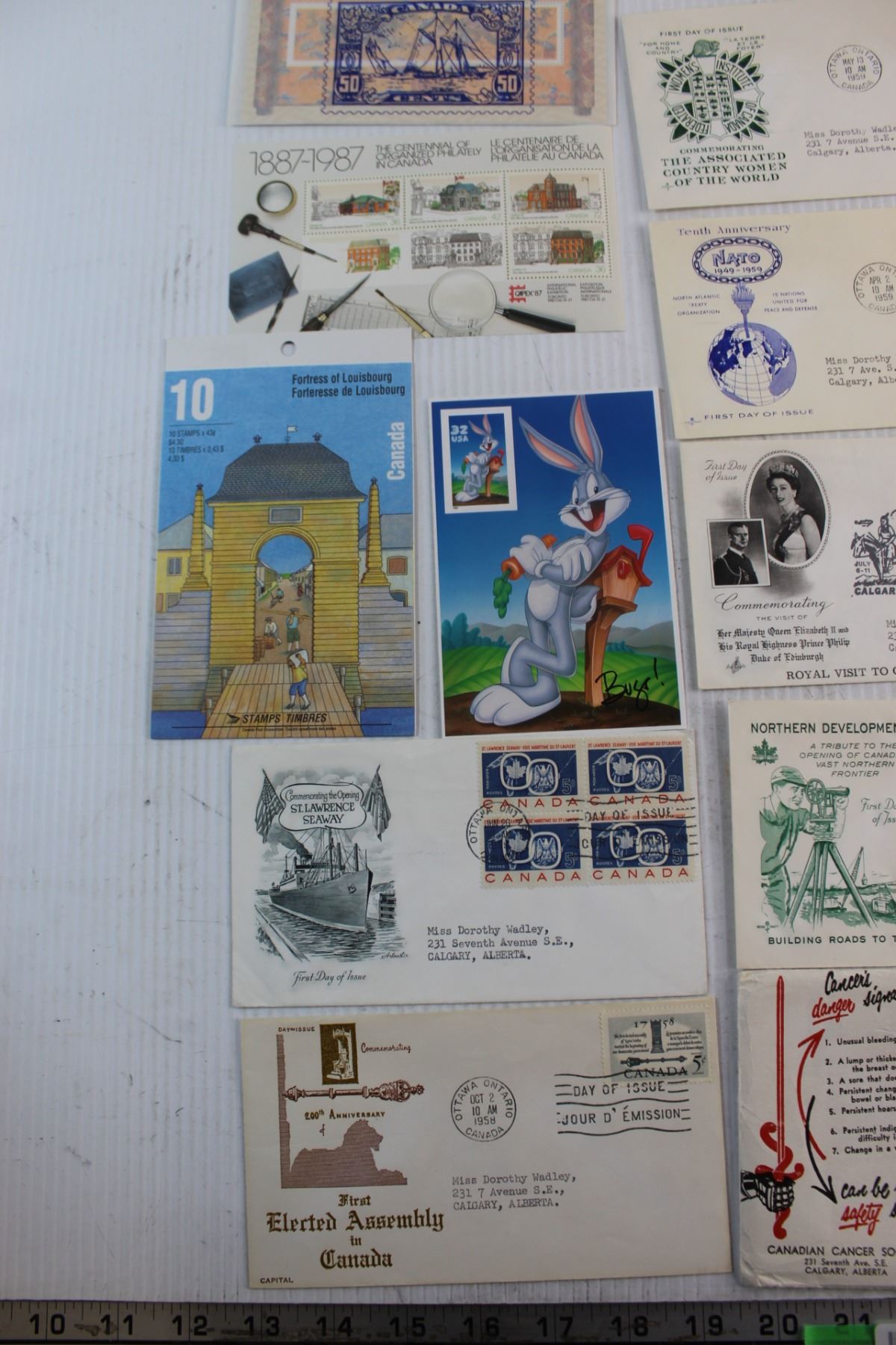 (16) Assorted Vintage Envelopes, Canadian and Bugs Bunny Post Stamps