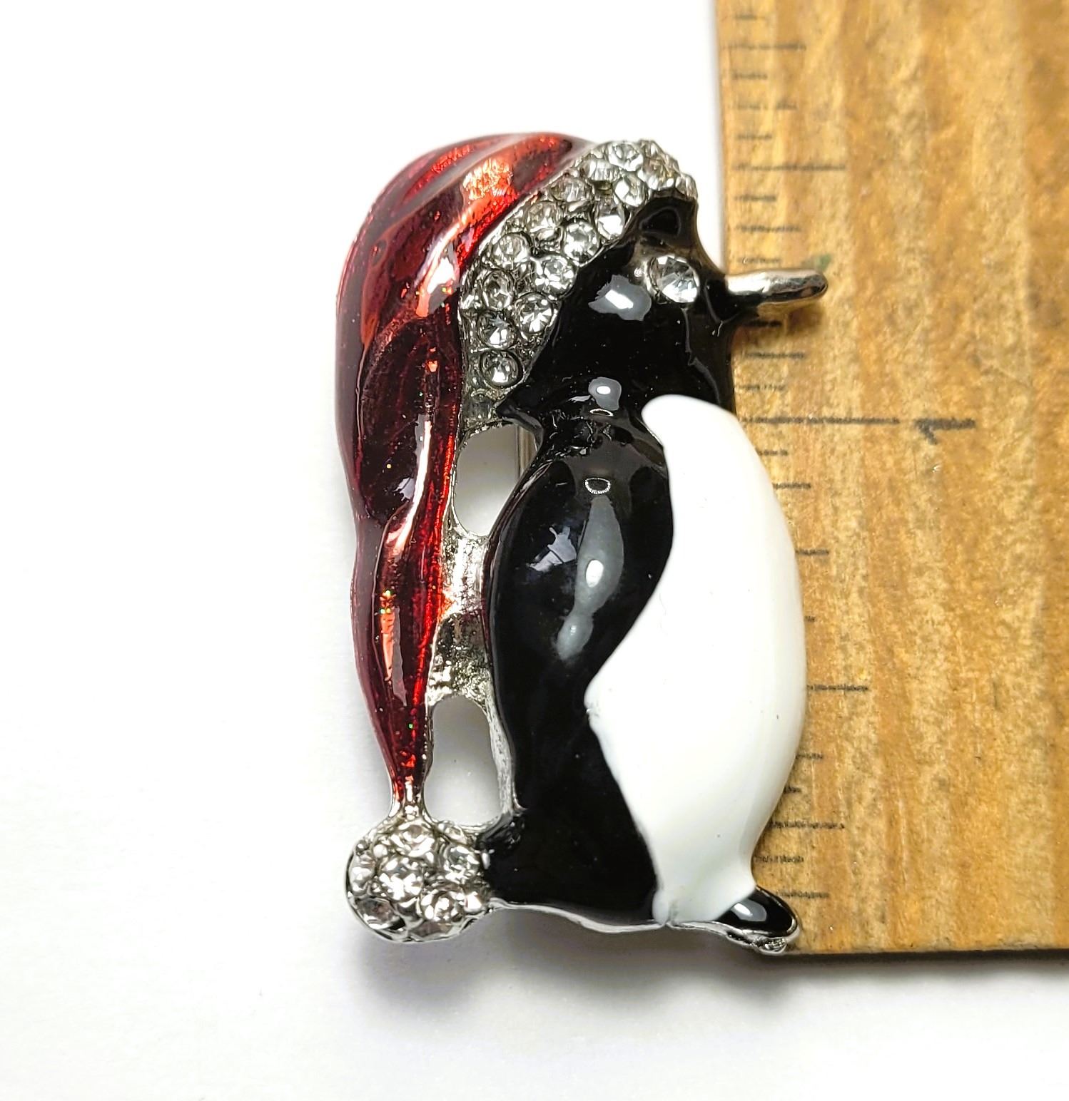 16) BLACK, WHITE AND RED ENAMEL PENGUIN