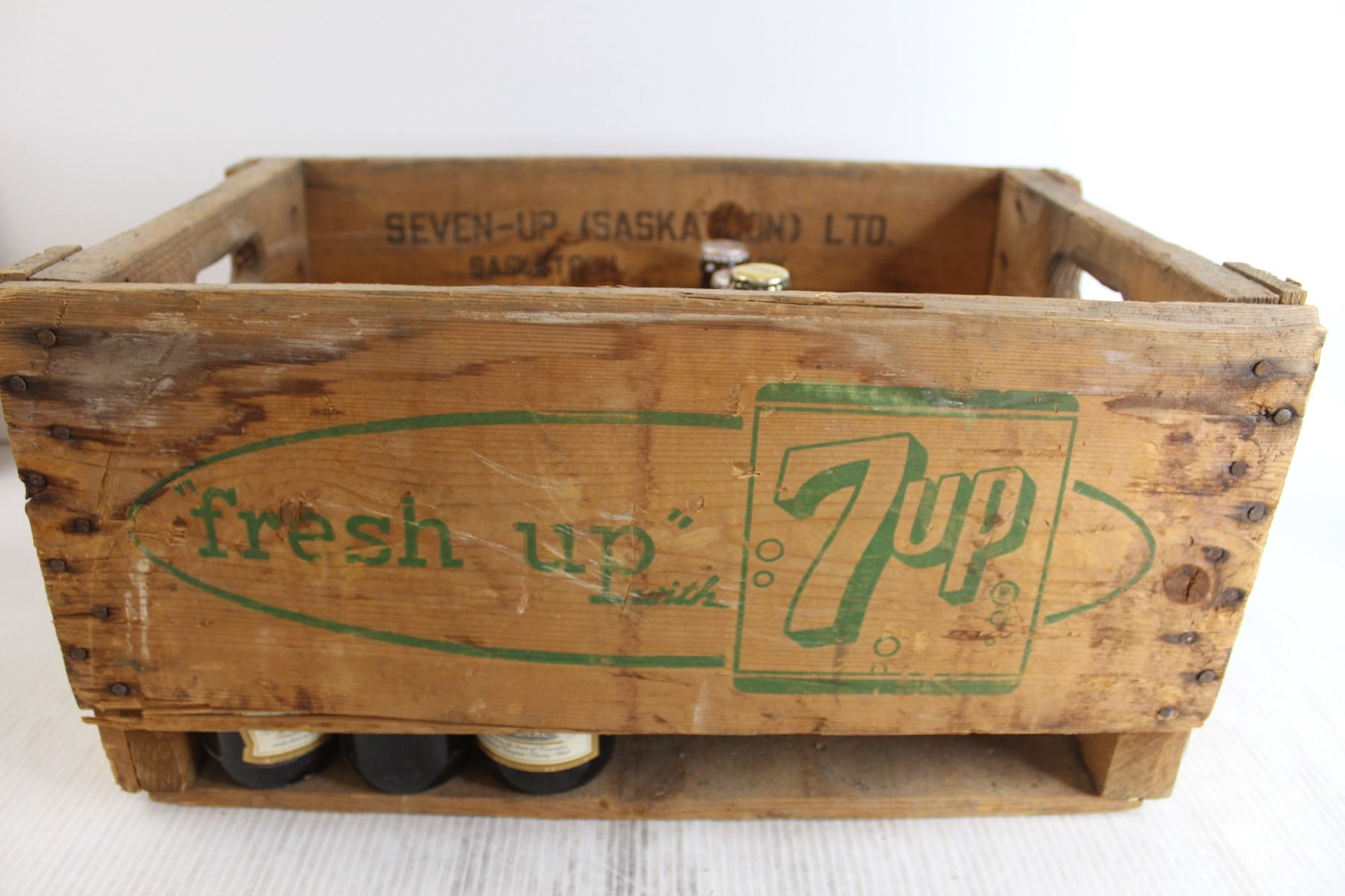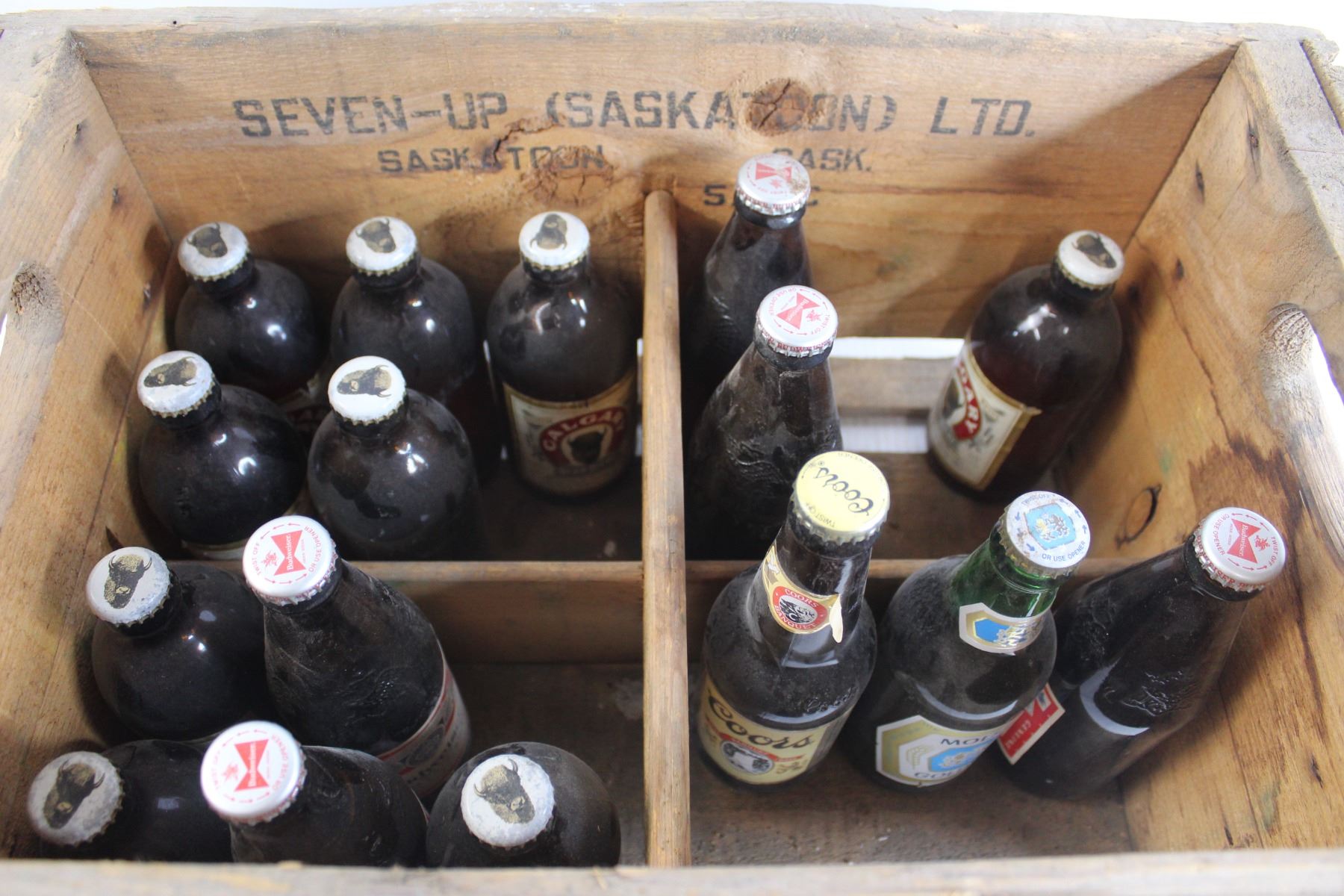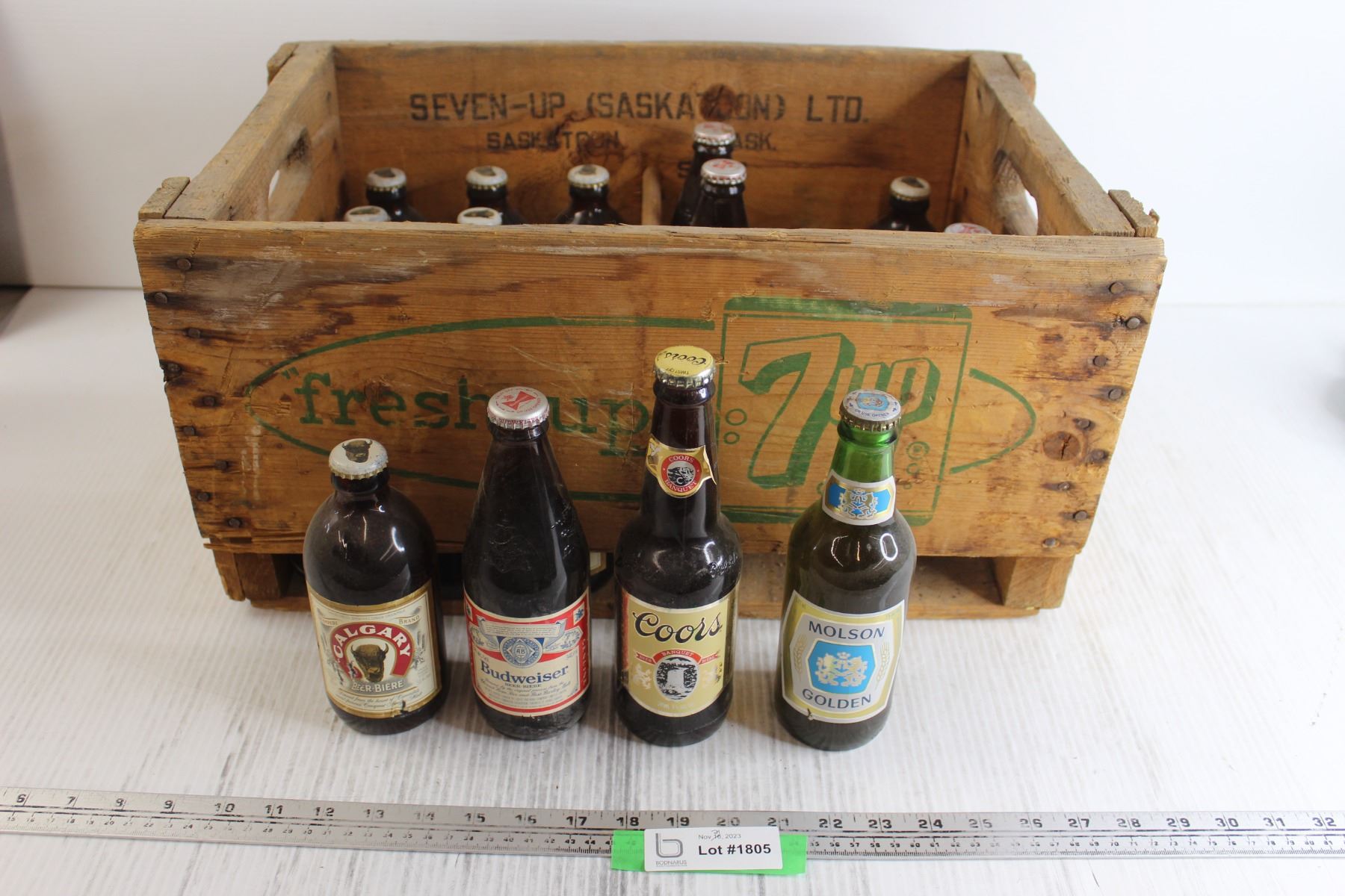 (16) Beer Bottles, 7-UP Wooden Case