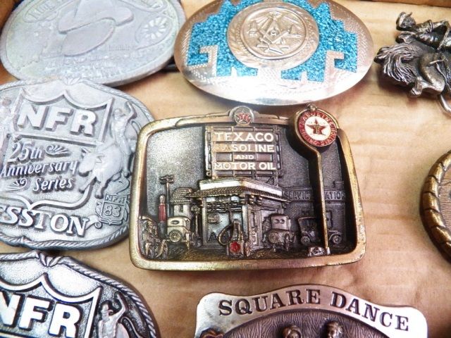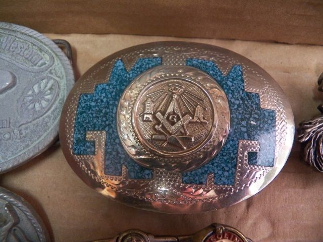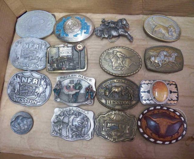 16 Different belt buckles, NFR Square Dance, Masonic, ect ect.