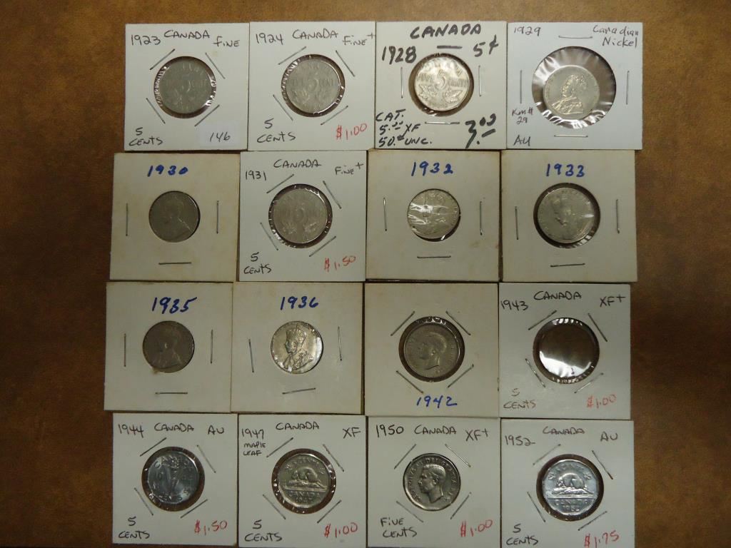 16 CANADA 5 CENTS DATES RANGE 1923-1952
