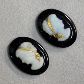 16 CTS PAIR OF VINTAGE QUARTZ CAMEO (MADE IN OLD WEST GERMANY) 18x13 MM