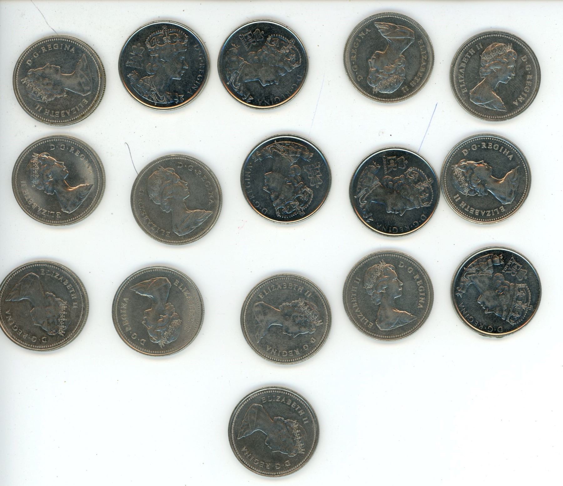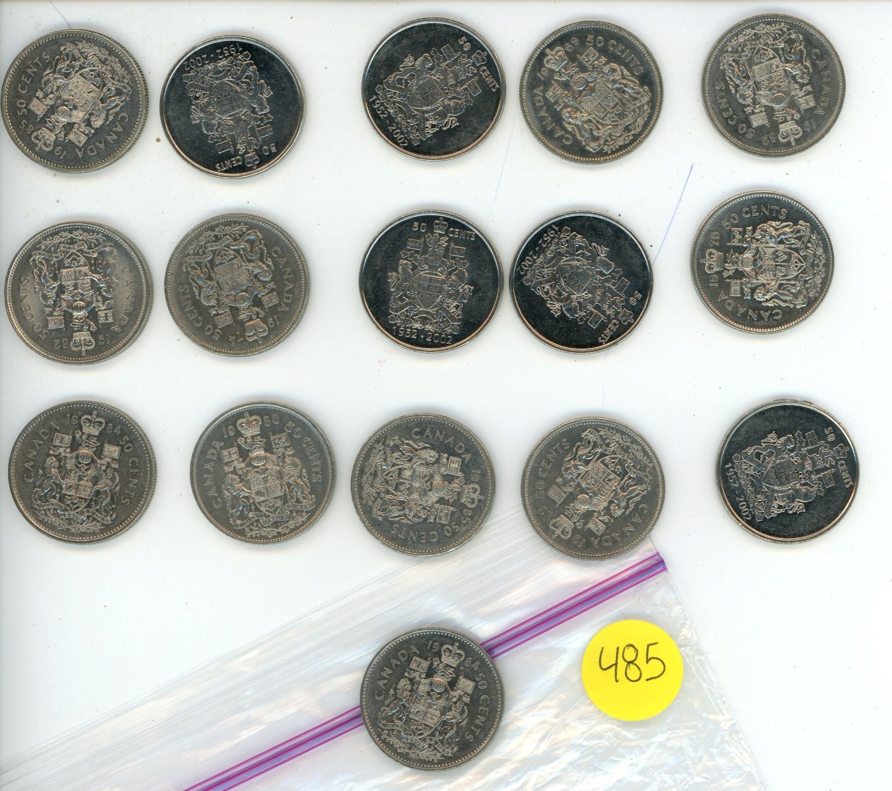 16 Canada 50 Cent Coins - Assorted Years 1968+