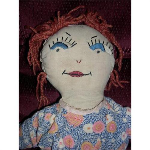 16" Cloth Stitched Doll. Doll is a Ragedy Ann type doll. She was homemade and has sparse yarn hair. She only wears a cotton dress. Please view pictures so you will see what you are buying. She is cotton stuffed. I'm guessing she is from the 1940's but am not sure. Doll comes from a smoke free environment. Buyer to pay 10.00 shipping, handling, and insurance. Thanks for viewing.
