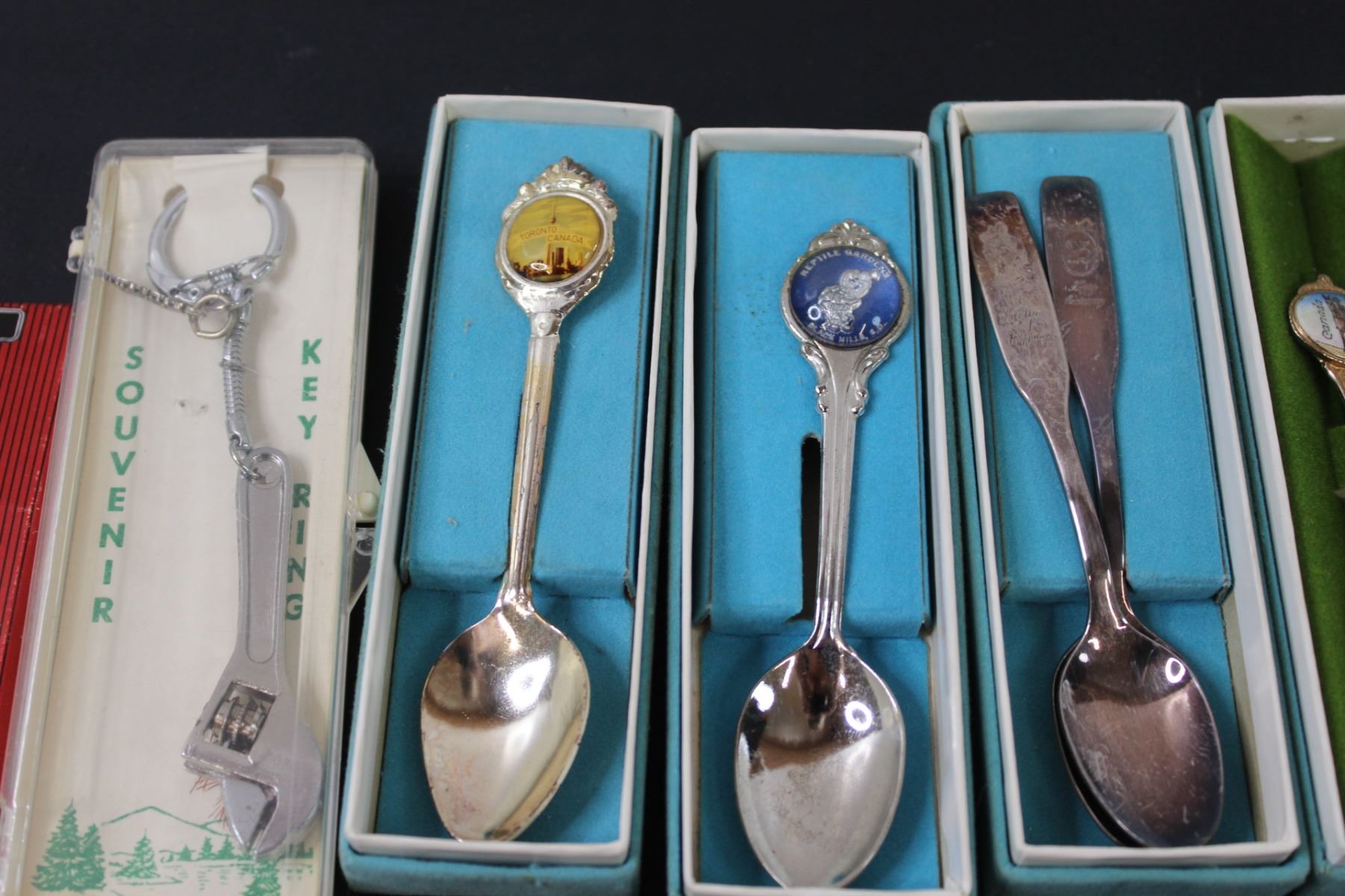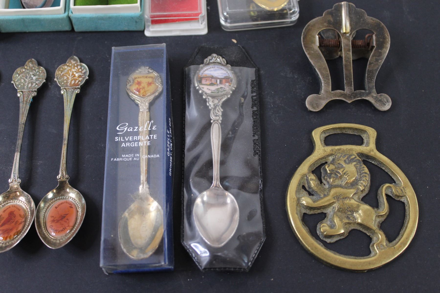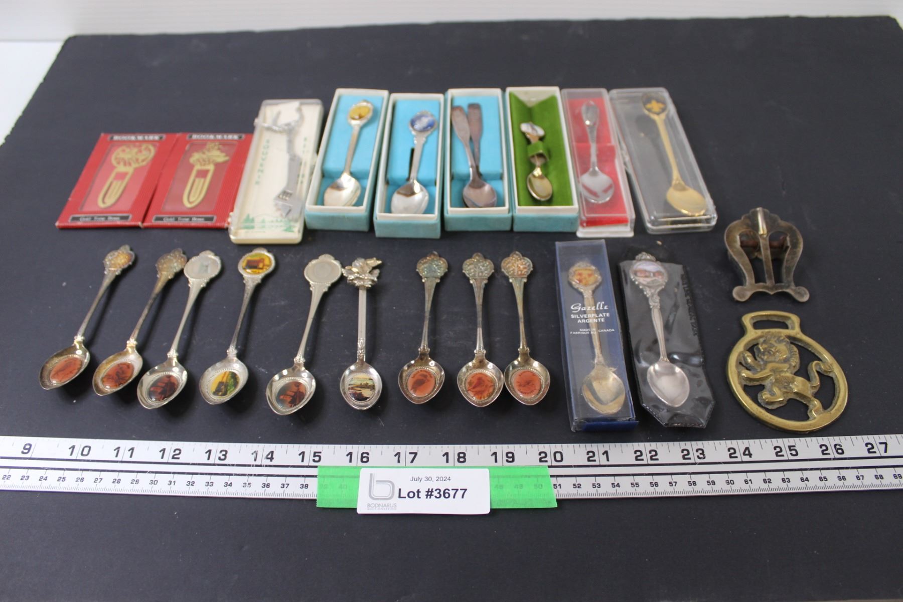 (16) Collector Spoons (School Reunion, Canadian, Misc.) & (2) Brass Bookmarks, Misc.