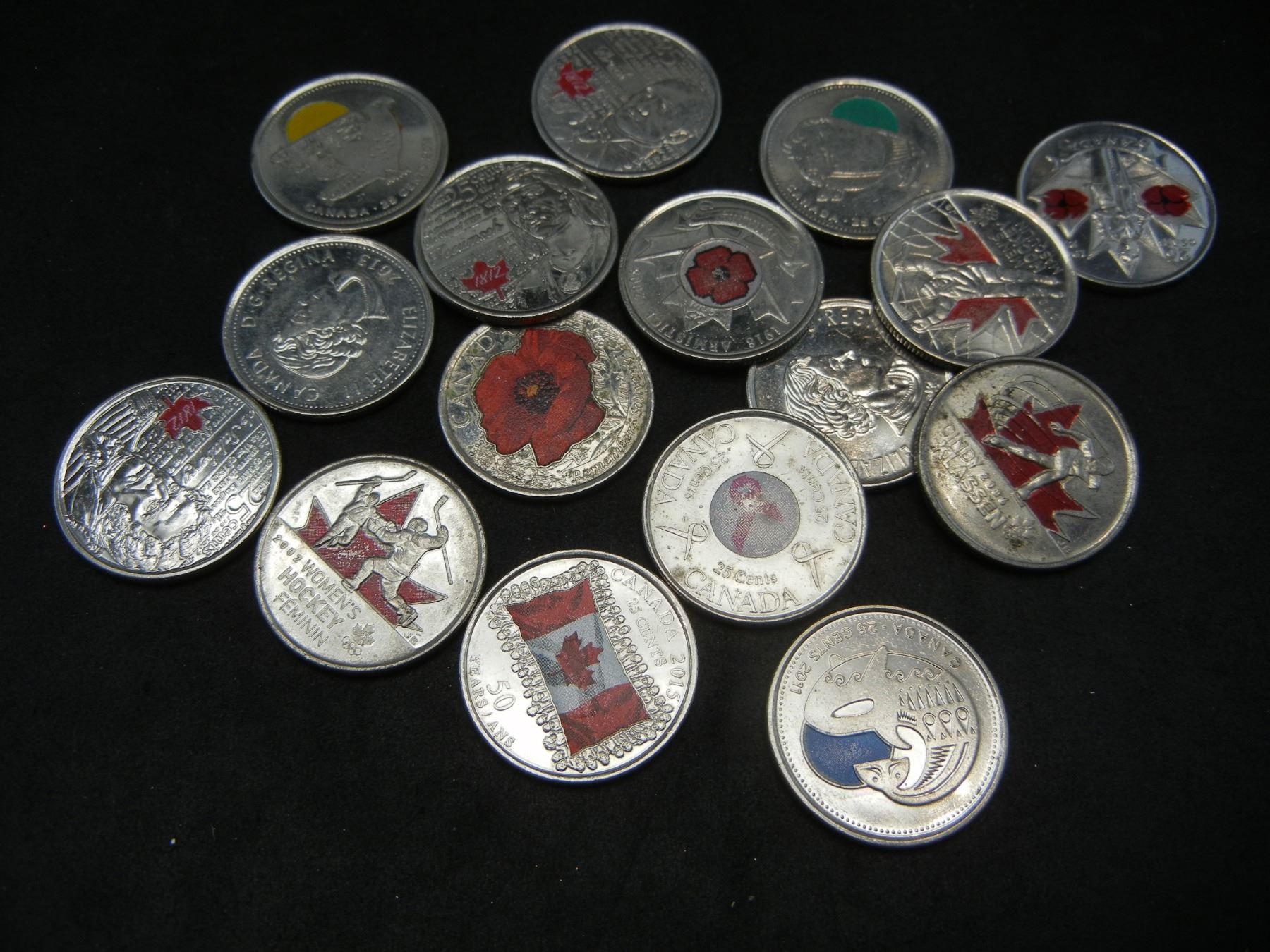 16 Different Collectible Colorized Quarter from Canada