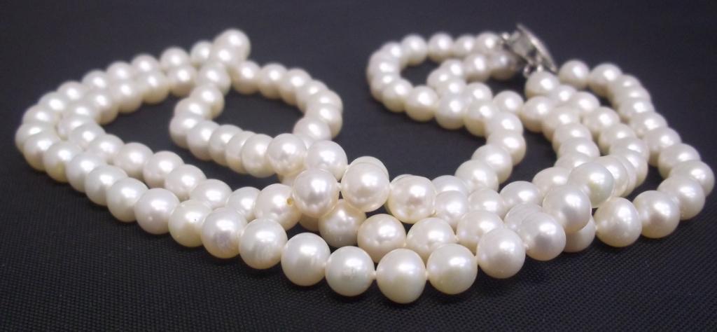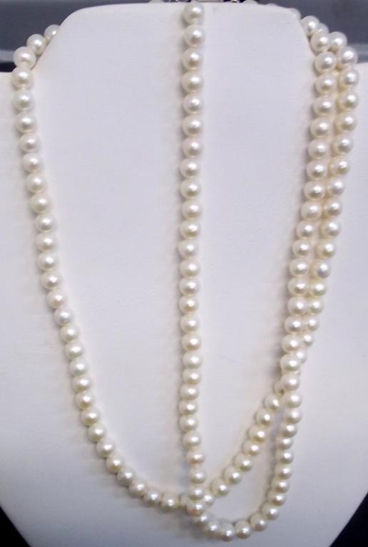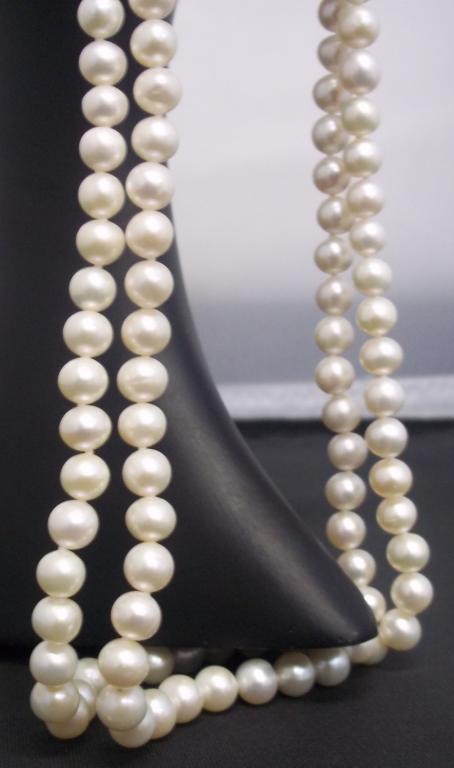 A real beauty, this necklace is made with 8mm fresh water pearls on a double strand. The retail value is $848-.