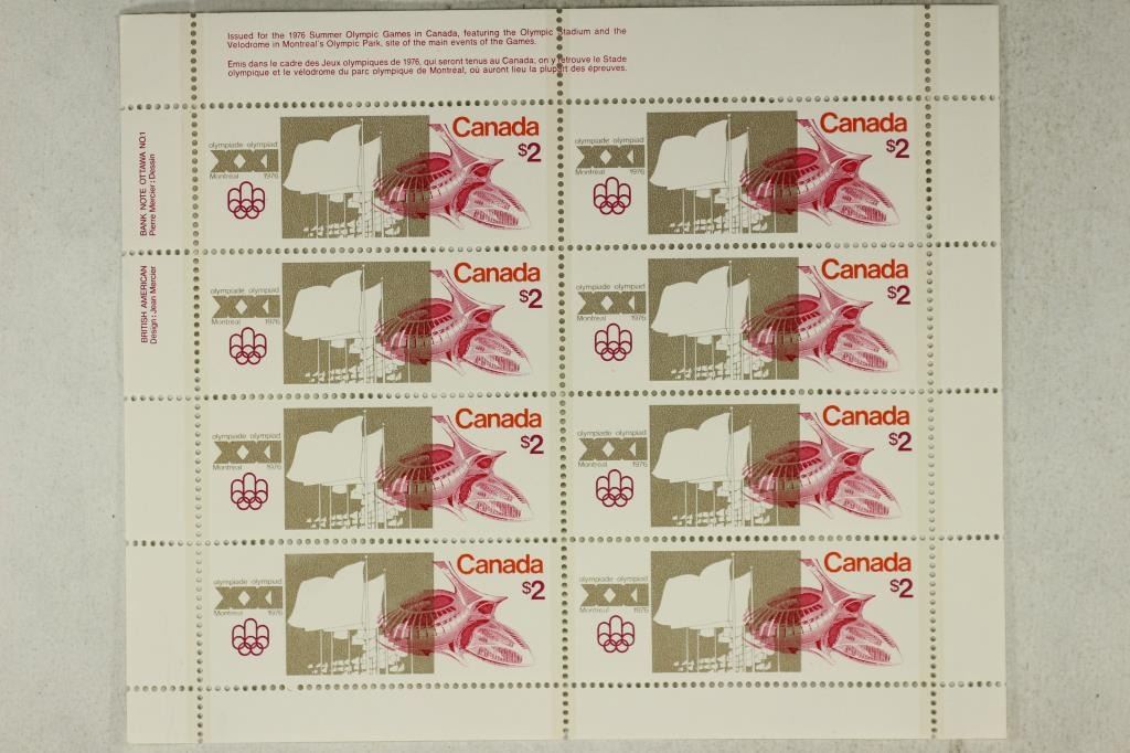 BLOCK OF 8-$2 STAMPS ISSUED FOR THE 1976 SUMMER OLYMPIC GAMES IN CANADA