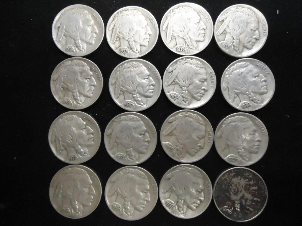 16 FULL DATE 1930'S BUFFALO NICKELS
