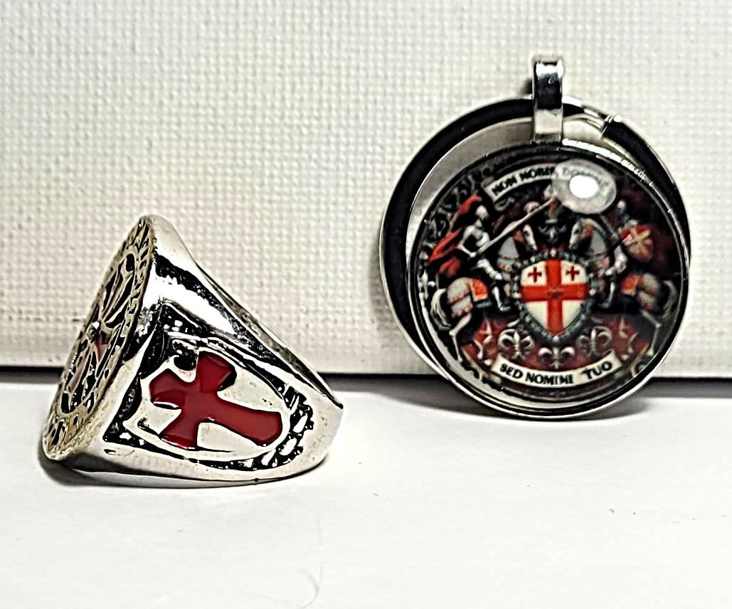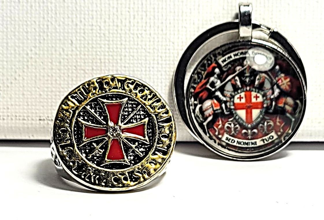 ENAMEL, SIZE 10 RING AND KNIGHTS TEMPLAR KEY CHAIN. JEWELERY