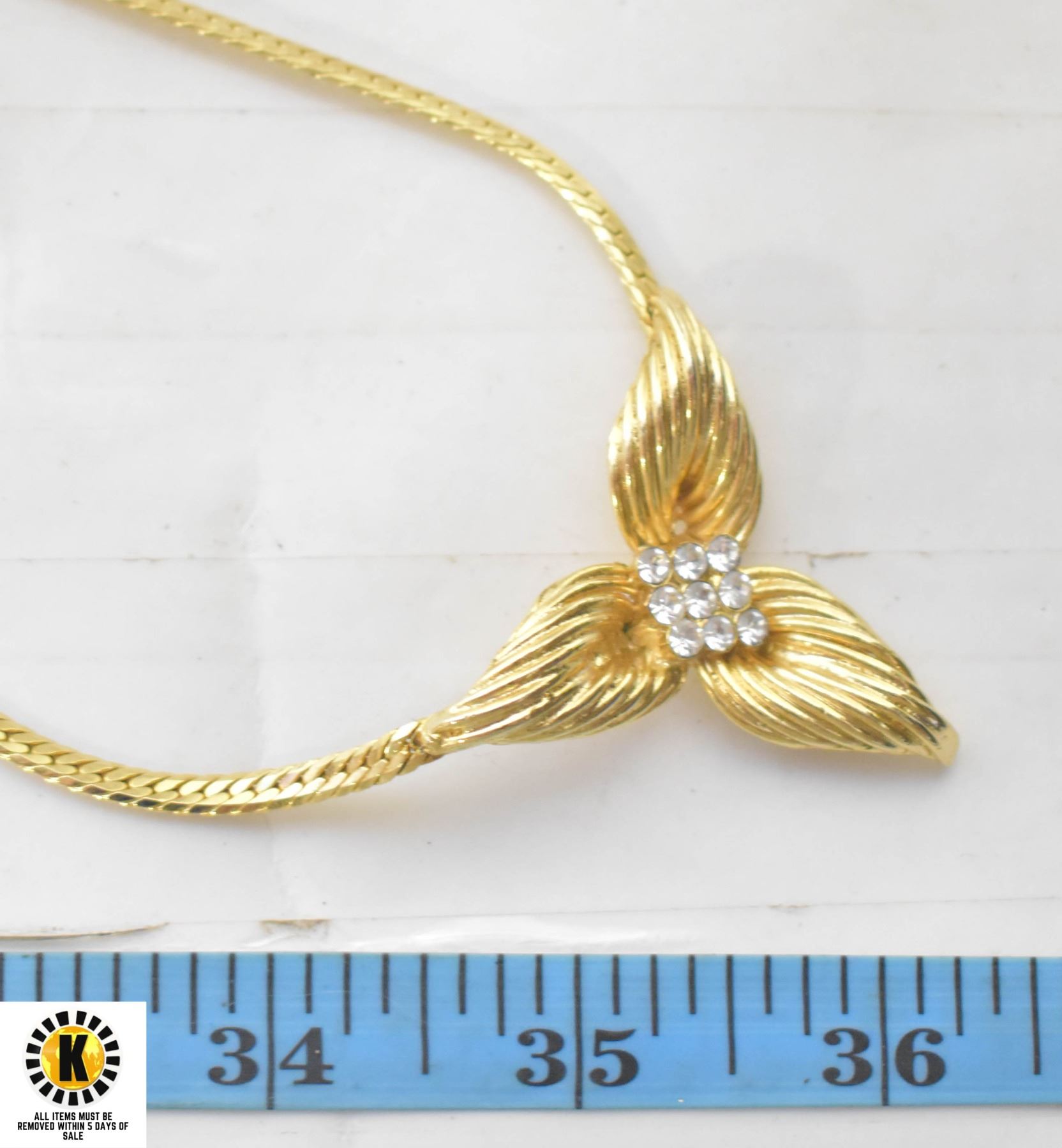 16 INCH GOLD PLATED FLOWER AND JEWELED NECKLACE