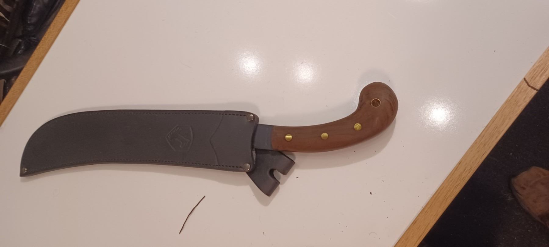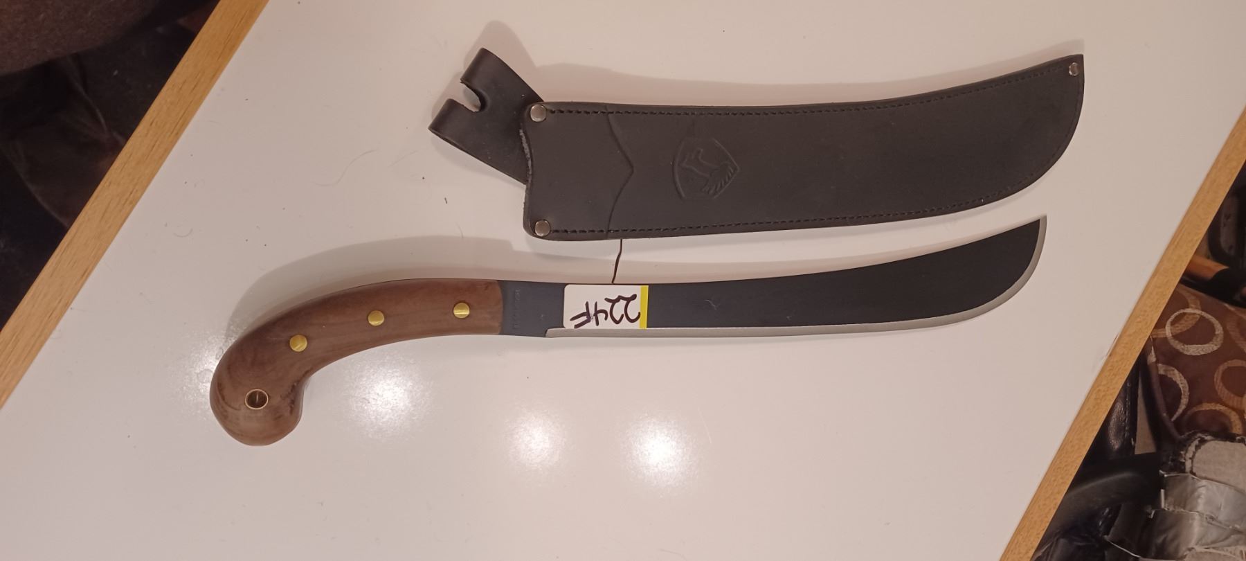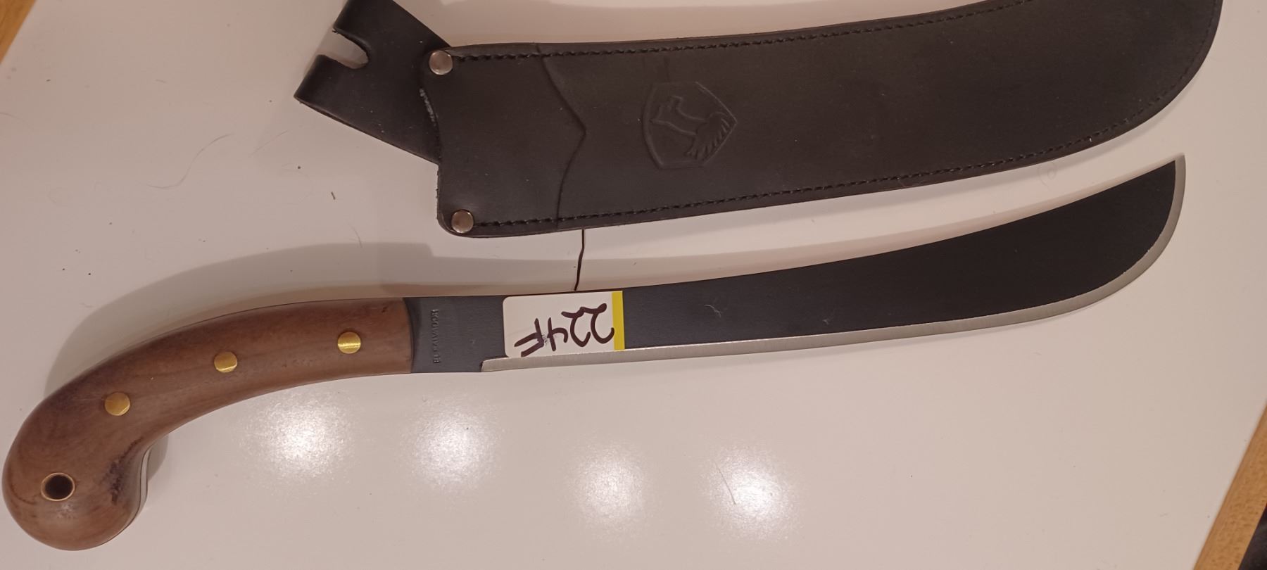 16 INCH MACHETTE C/W SHEATH AND WOOD HANDLE