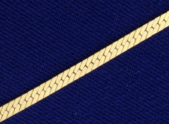 In 14K Yellow Gold. 2.4mm wide, with safety clasp. 5.4g
