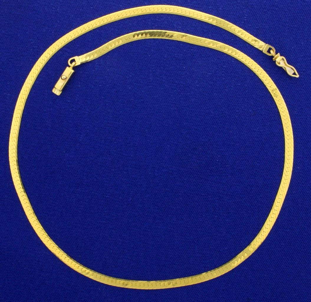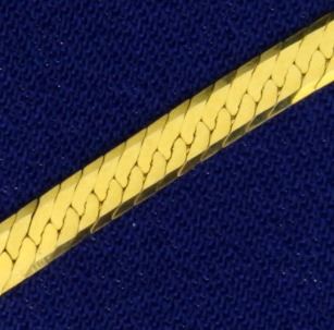In 14k yellow gold. 3mm wide, with safety clasp. 4.9g.