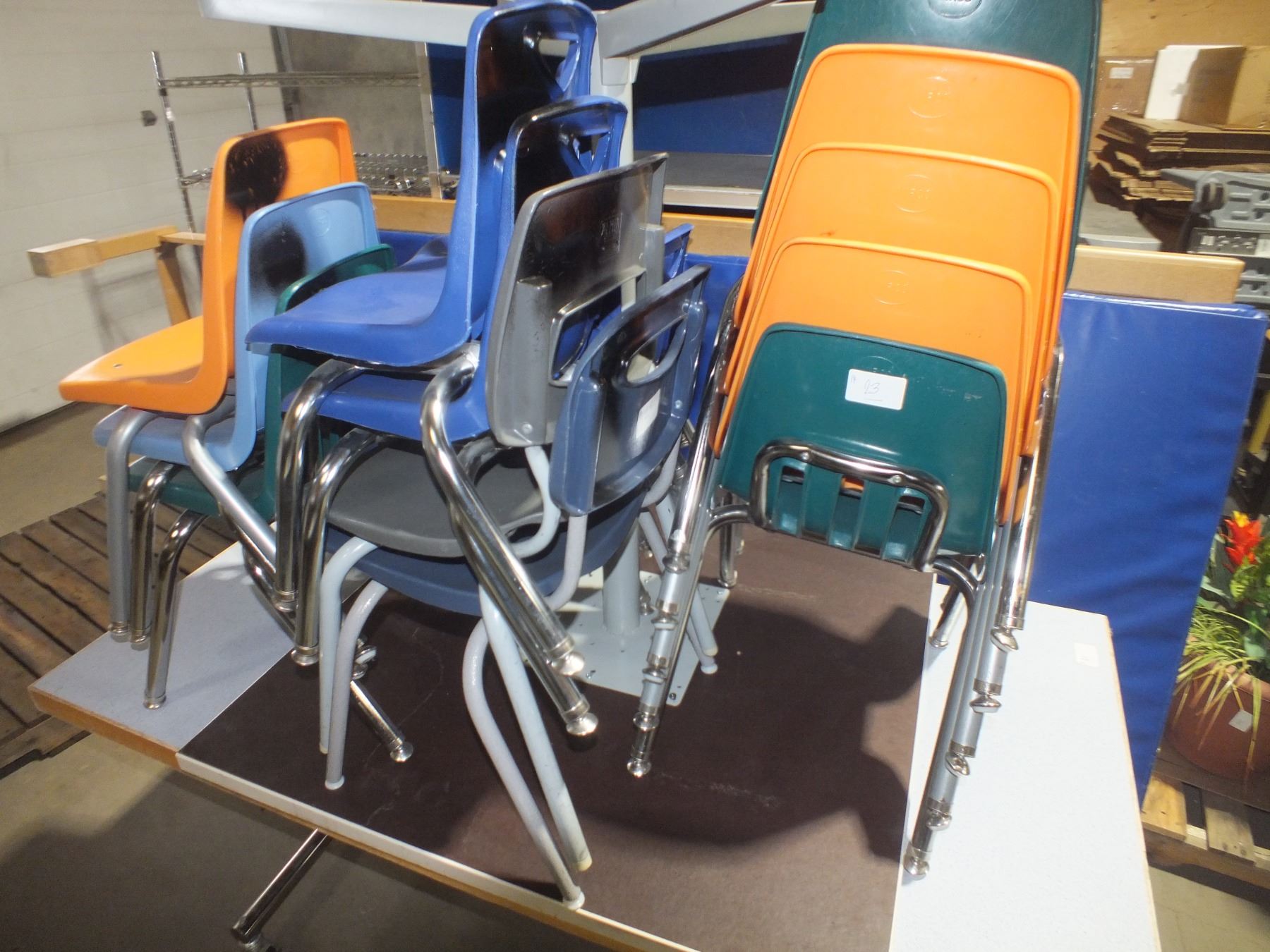 16 Kids Stacking Chairs & 2 Tables...sold as is / where is...used