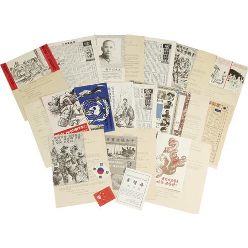 <B>Grouping of 16 Korean War Anti-Communist UN Propaganda Leaflets From 1952.</B></I> Each approximately 5" x 8" and stapled to an original translation sheet titled "Headquarters Far East Command Psychological Warfare Section". These leaflets, in Chinese and Korean, offered food and warmth to potential defectors from north of the 38th Parallel. The text is augmented by photographs and line drawings. An impressive array of official file specimens. The translation sheets are evenly toned with the material being in overall excellent condition. <I>From the Henry E. Luhrs Collection.</B></I><BR><BR><b>Shipping:</b> Miscellaneous Collectibles, Smal (<a target="_blank" href="http://www.heritageauctions.com/common/shipping.php">view shipping information</a>)