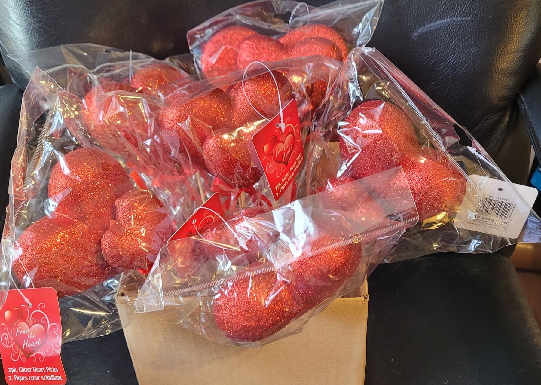 16) LOT OF 6 PACKAGES OF 2 GLITERRY HEARTS, ONE I