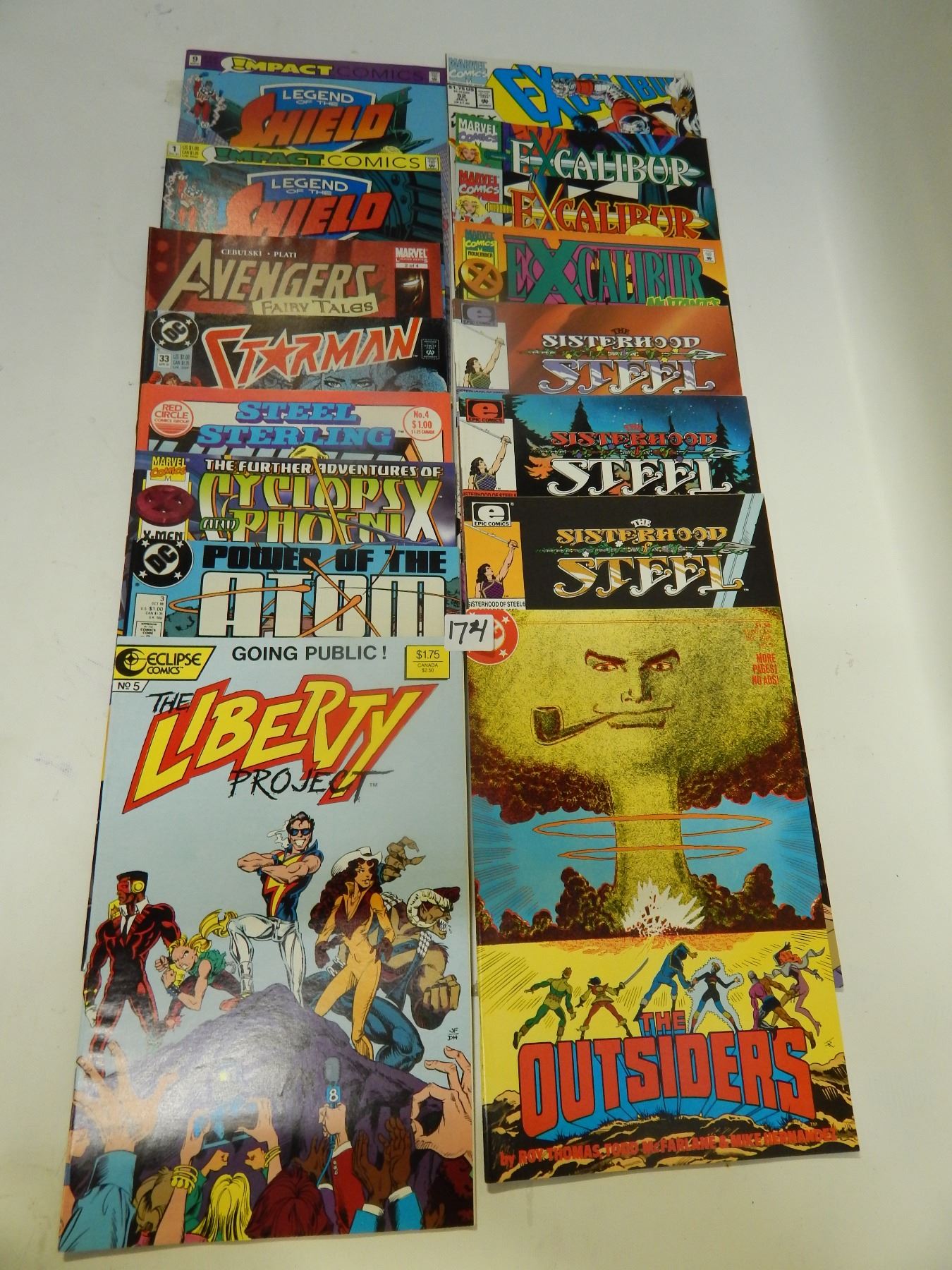 16 MISC COMICS/EXCALIBUR/SISTER HOOD STEEL/OUTSIDERS/LEGEND OF SHIELD/AVENGERS/STAR MAN/CYCLOPS PHOENIX/POWER OF ADAM/LIBERTY PROJECT