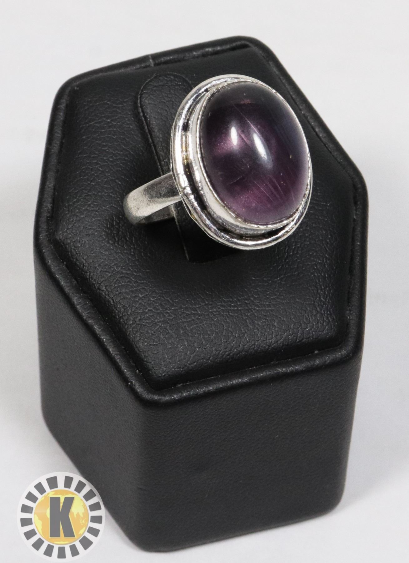 16) NATURAL DEEP PURPLE OVAL AMETHYST RING,