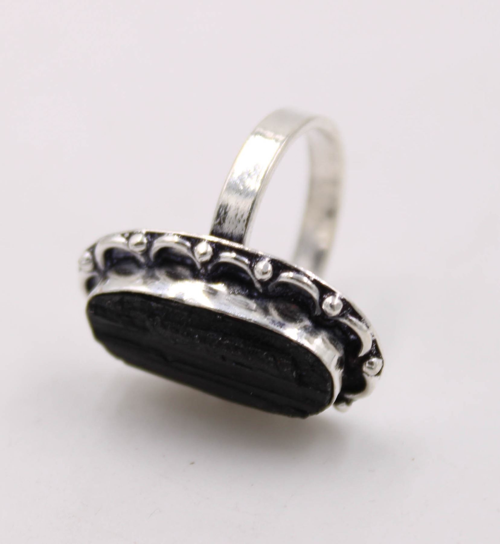16)  NATURAL OVAL BLACK TOURMALINE SIZE 7.75 RING,