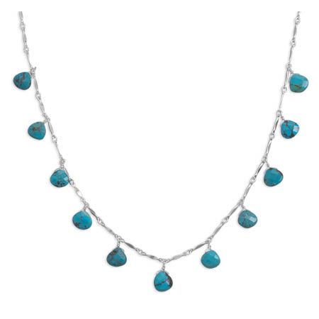 1.5mm wide twisted links with 7.5mm turquoise drops and lobster clasp. All turquoise has been treated or reconstituted unless otherwise noted. Color will vary. .925 Sterling Silver