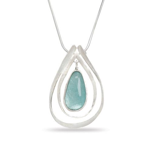 1mm snake chain with lobster clasp. 47x31mm silver design with 22x13mm pear shaped ancient glass. Color will vary.Comes with Certificate of Authenticity. .925 Sterling Silver