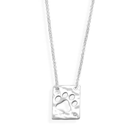 16 inch sterling silver necklace with 11.5mm x 16mm pendant with cut out paw print and 1.5mm CZ. Necklace has a lobster clasp closure. .925 Sterling Silver