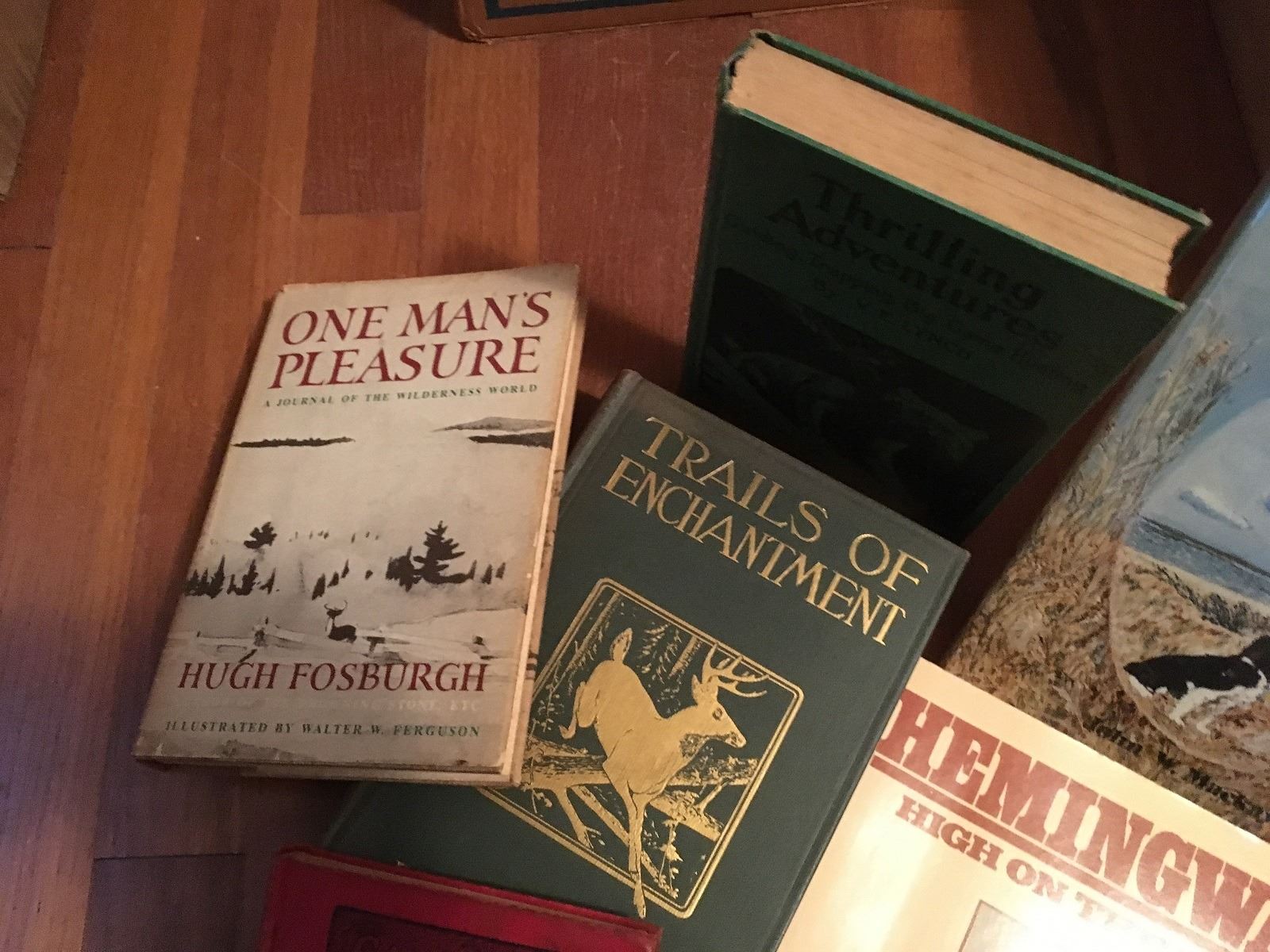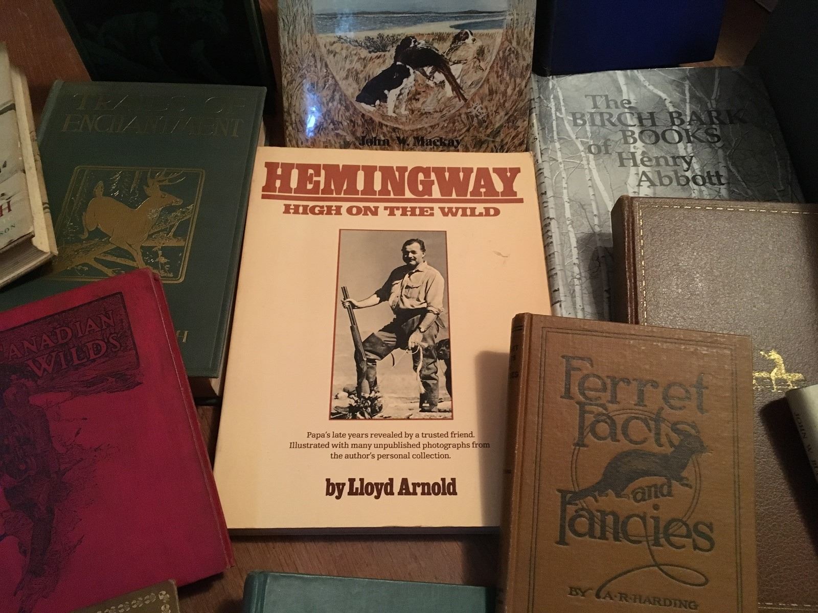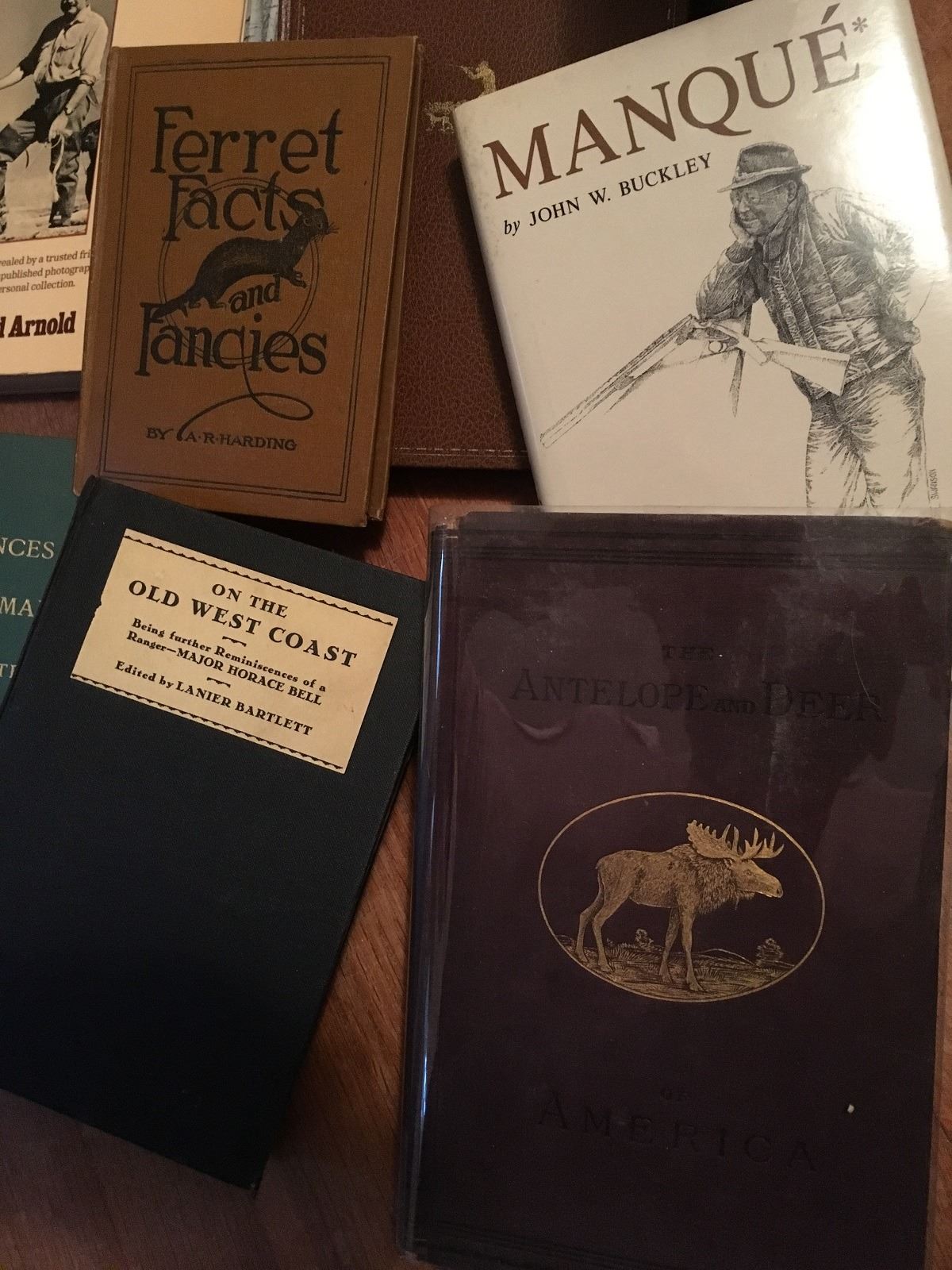 16 North American Hunting books including first editions of early books. Lives of the Hunted by Ernest Eston-Thompson 1901 First Edition; Canadian Wilds by Martin Hunter 1907 First Edition, Thrilling Adventures, Guiding, Trapping, big Game Hunting by V.E. Lynch 1928, Maque by John W. Buckley, 1988 Private Print, ,Games Trails in British Columbia by A. Bryan Williams 1925 First Edition; The Antelope and Deer of America by John Dean Caton 1877 First Edition, etc. All from a lifetime collection. (RL)