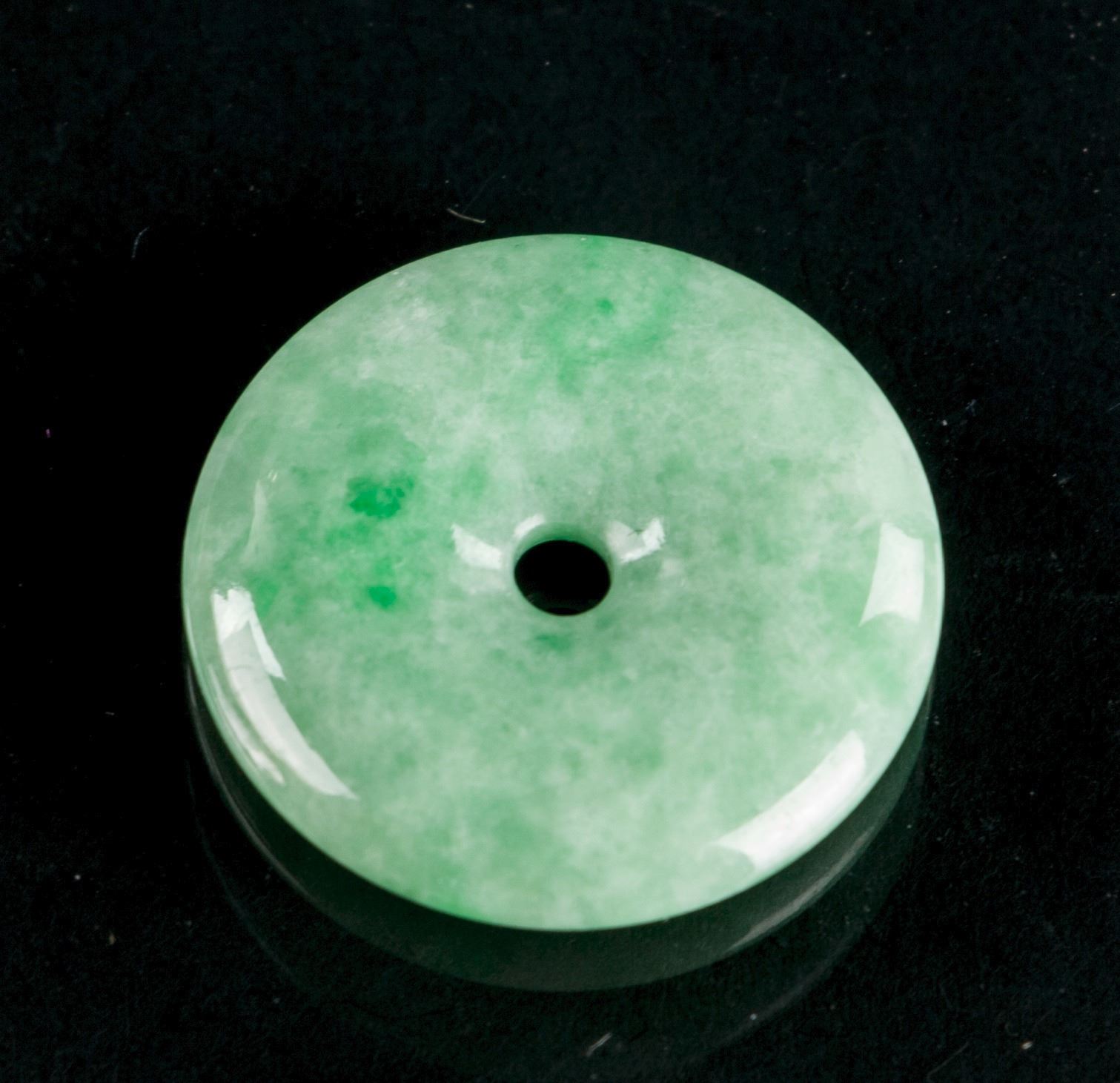 16 pieces of assorted Burma green jadeite pendant; of 10 pieces of circle peace pendant; 6 pieces of tube form pedant; 1.1 cm-3.2 cm, 80 grams, Density: 3.30-3.39