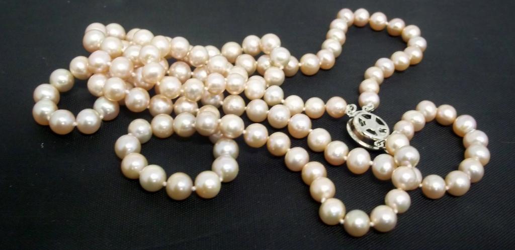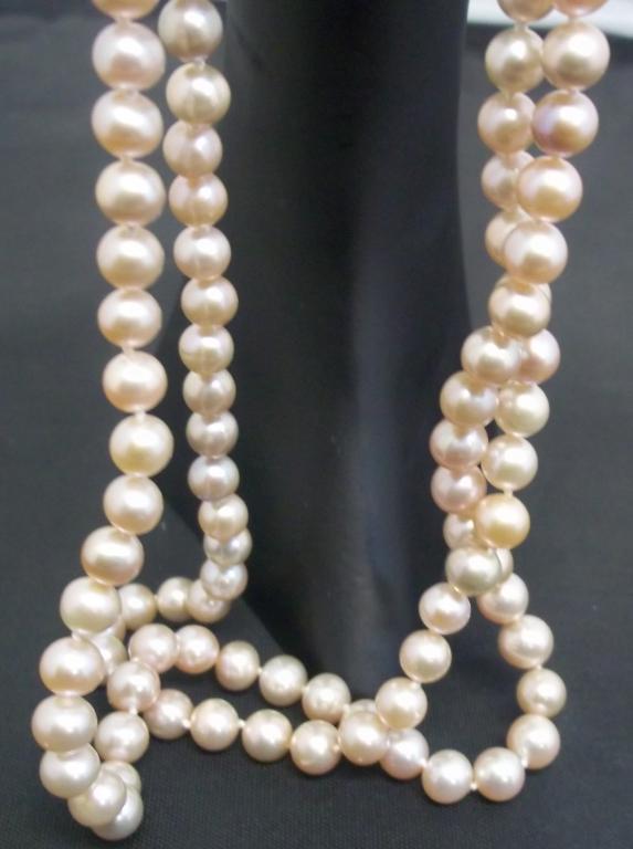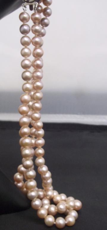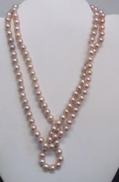 This beautiful 16" double strand necklace is made with 6mm fresh water pale pink pearls. The retail value is $414-.