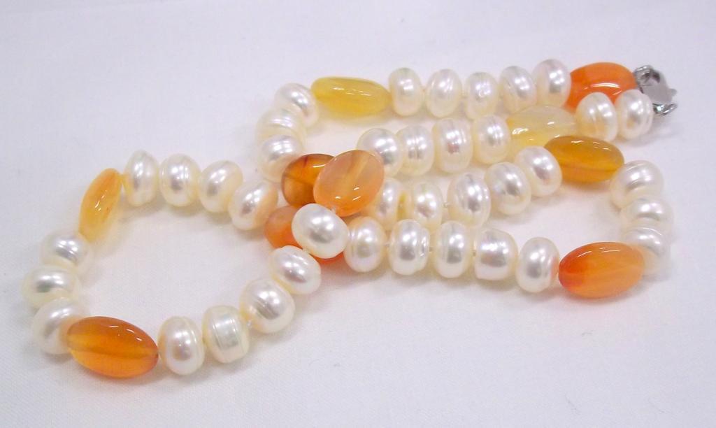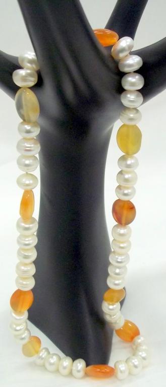 This agate and fresh water pearl necklace is a real beauty. The retail price is $880-