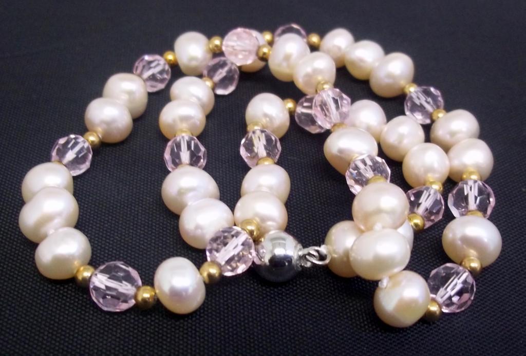 This beauty retails for $396-. The pearls are 8mm and are complimented by the pink Swarovski crystals.