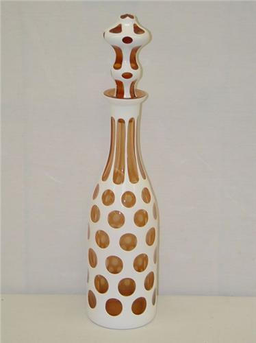 16" SANDWICH WHITE CUT TO LIGHT AMBER OVERLAY DECANTER - MINOR CONTENT STAIN