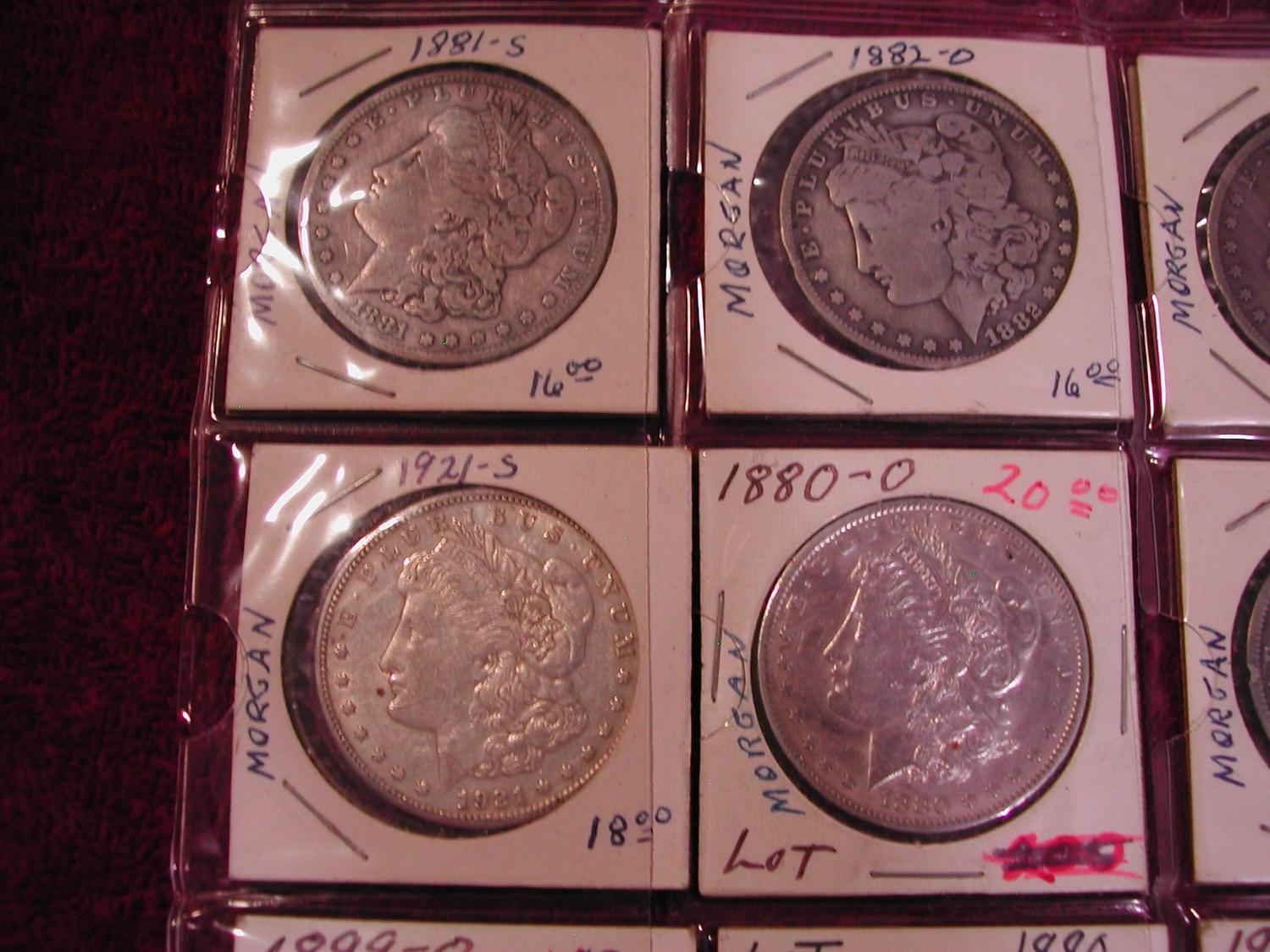 16 SILVER DOLLARS (15 MORGANS) - 1881 S, 1882 O, 1878 S, 1880 O, 1921 S, 1880 O, 1884 S, 1881 O, 1