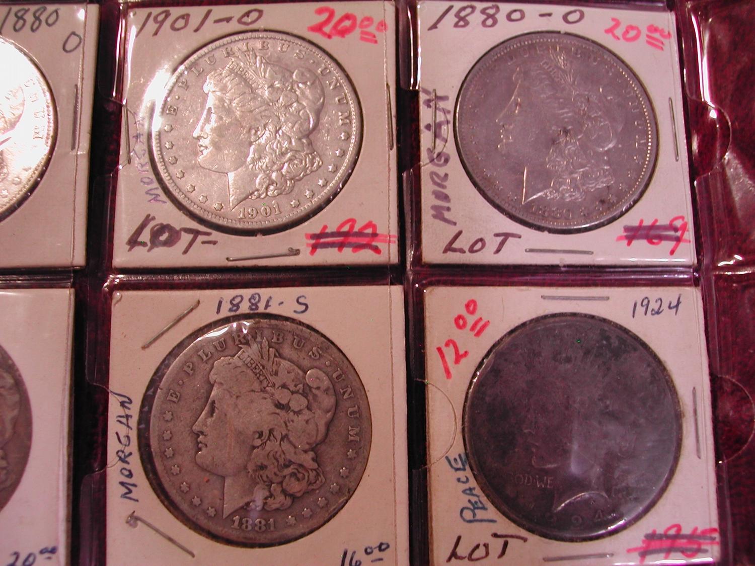 16 SILVER DOLLARS (15 MORGANS) - 1881 S, 1882 O, 1878 S, 1880 O, 1921 S, 1880 O, 1884 S, 1881 O, 1880 O, 1901 O, 1880 O, 1881 O, 1881 S, 1924 PEACE